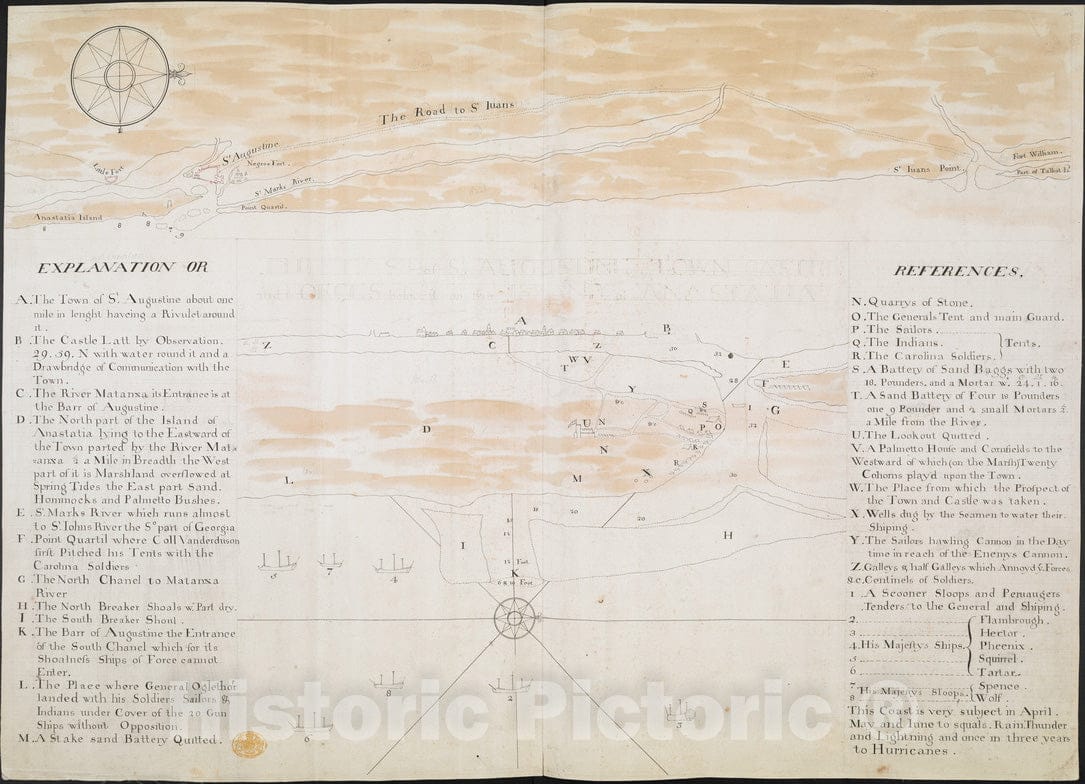 • .Historical Map, 1743 [Map of The Coast of Florida from Fort William to Musketae River] [North Sheet], Vintage Wall Art