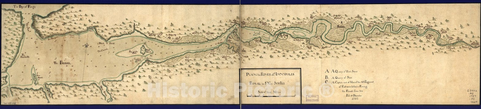 Historical Map, 1757 Plan of The River of Annapolis Royal in Nova Scotia, Vintage Wall Art
