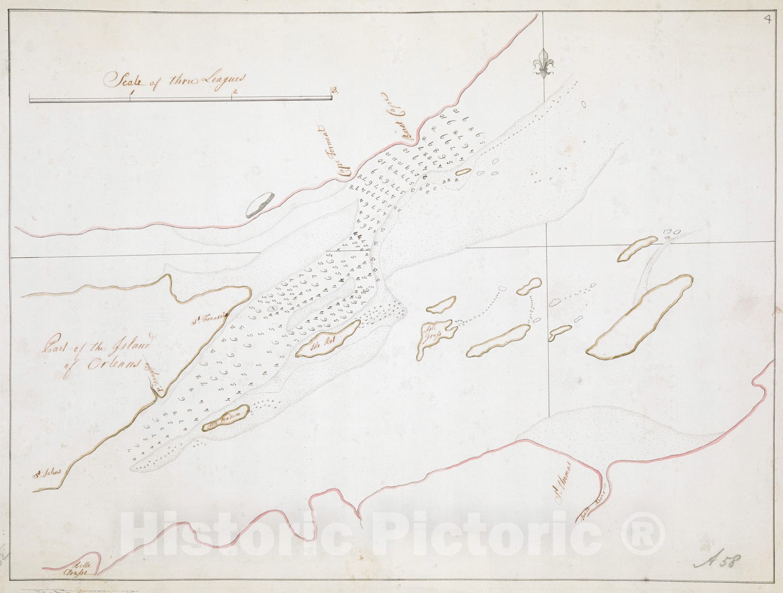 Historical Map, 1760-1770 [Part of The Island of Orleans and The Saint Lawrence River], Vintage Wall Art
