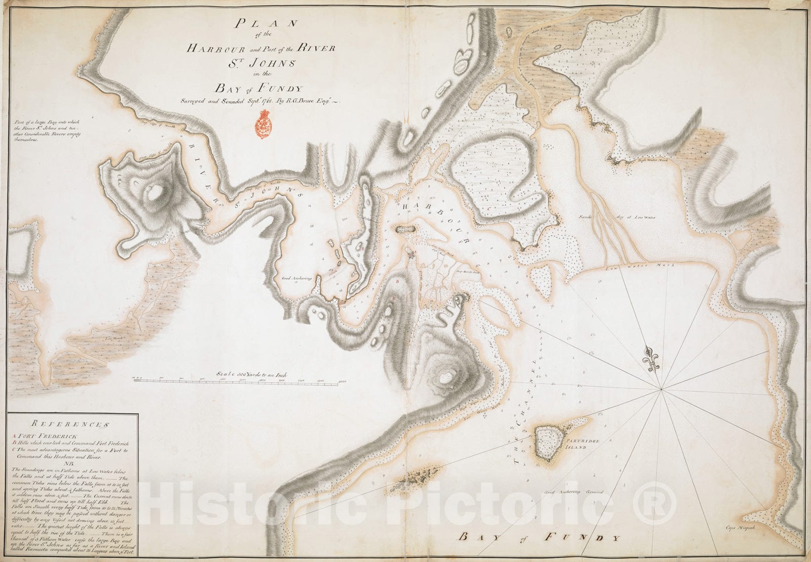 Historical Map, 1761 Plan of The Harbour and Part of The River S.T Johns in The Bay of FUNDY, Vintage Wall Art