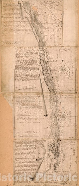 Historical Map, 1765 Chart of The sea Coast with The Head of Sharkshead River ; Chart of New Inlet, Vintage Wall Art
