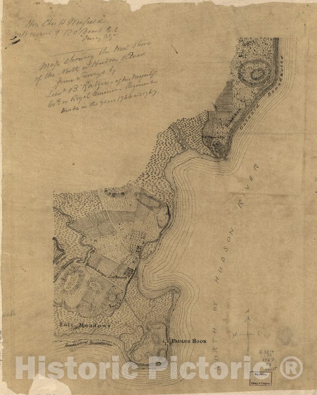 Historical Map, 1767 Map Showing The west Shore of The North or Hudson River, Vintage Wall Art