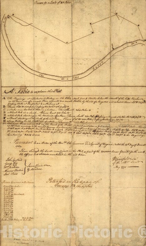 Historical Map, 1771 Plat of a survey of 2,314 acres of land, being the first large bottom on the east side of the Ohio River : 3 or 4 miles below the mouth, Vintage Wall Art