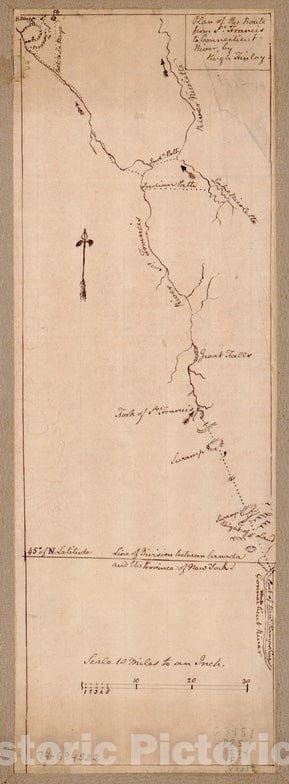 Historical Map, 1774 Plan of The Route from St. Francis to Connecticut River, Vintage Wall Art