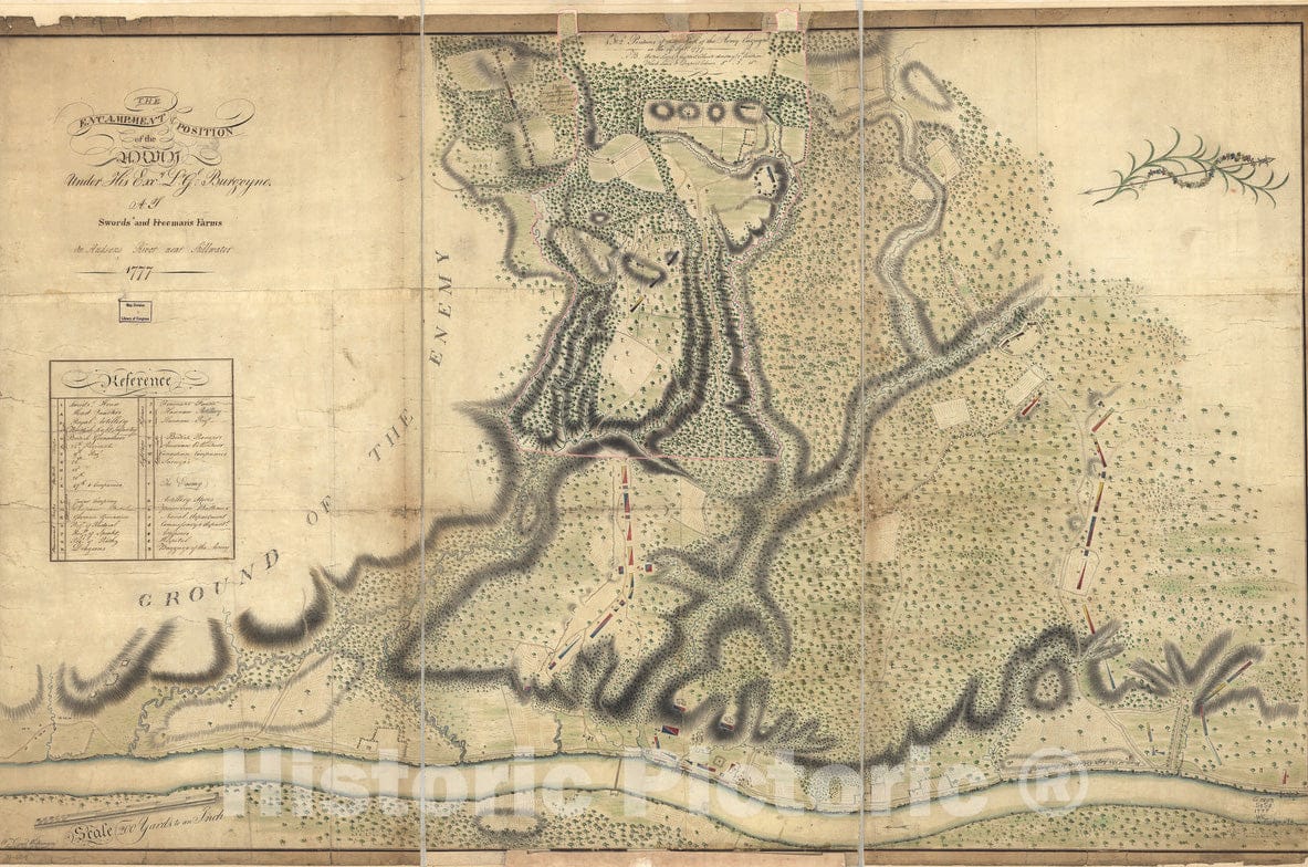 • .Historical Map, 1777 The Encampment & Position of The Army Under His Excy. Lt. Gl: Burgoyne : at Swords's and Freeman's Farms on Hudsons River Near Stillwater, 1777, Vintage Wall Art