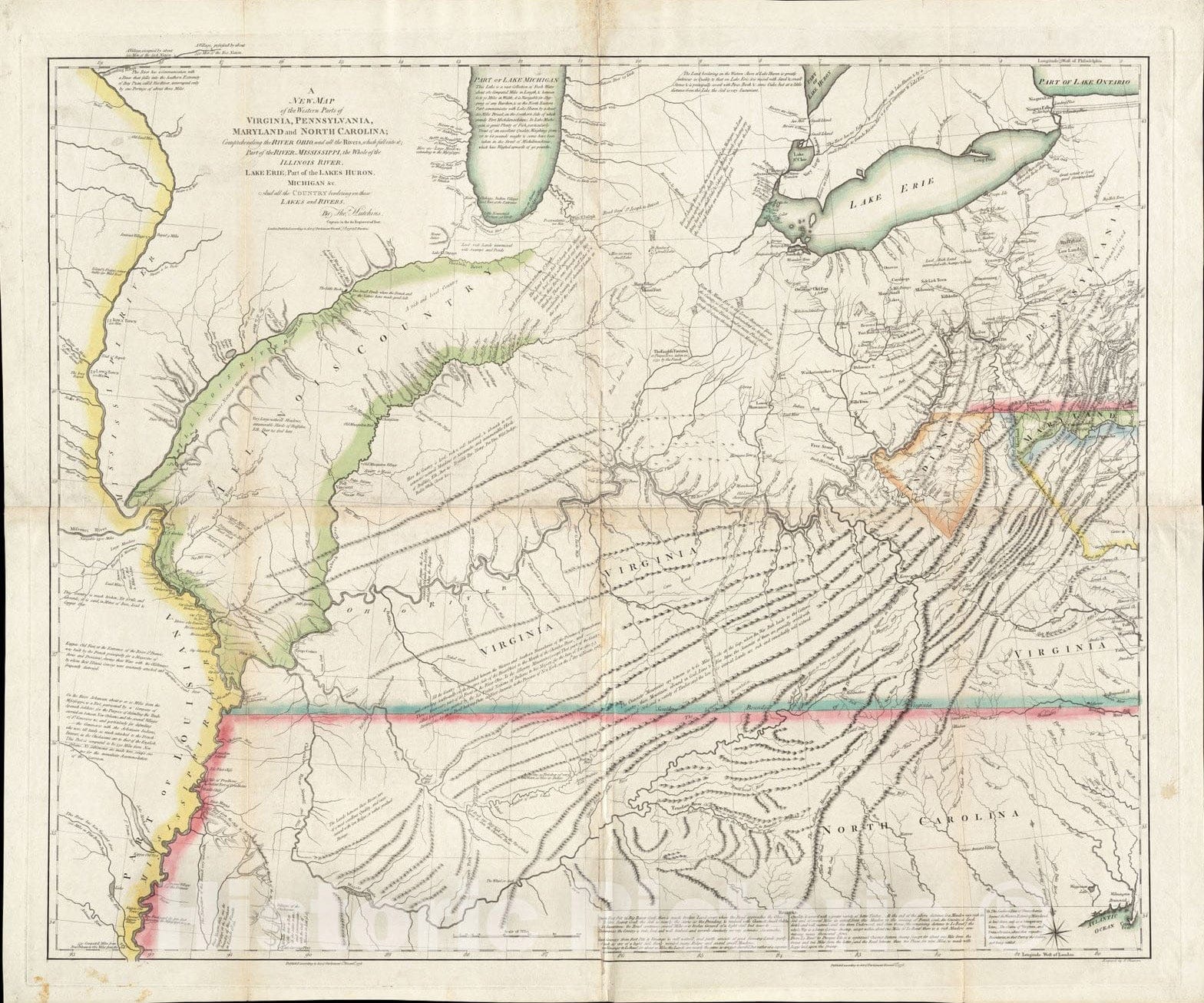 Historical Map, 1778 A New map of The Western Parts of Virginia, Pennsylvania, Maryland and North Carolina : comprehending The River Ohio, and All The Rivers, Vintage Wall Art