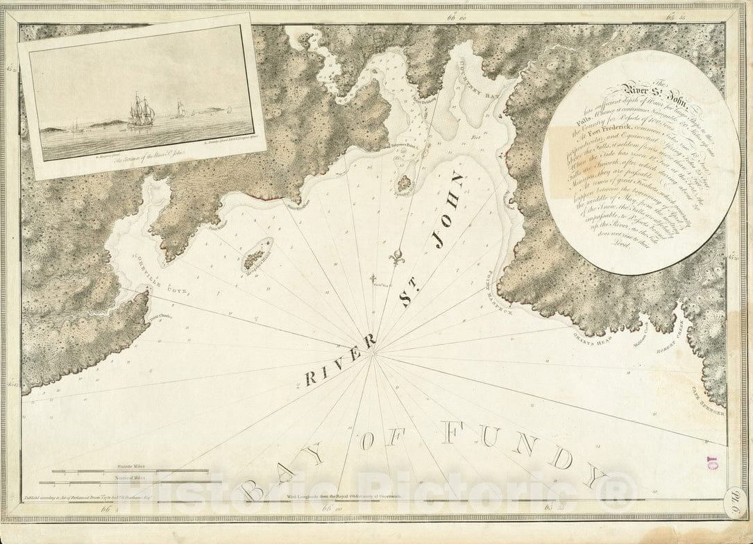 Historical Map, 1780 The River St. John, Vintage Wall Art