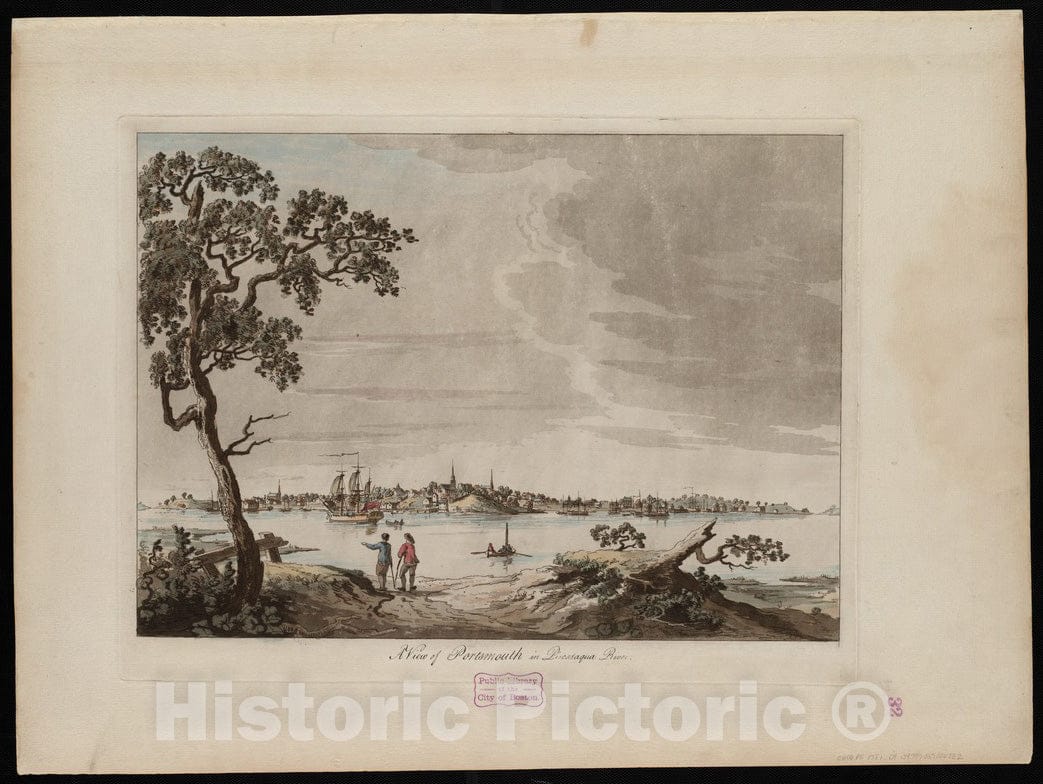 Historical Map, 1780 A View of Portsmouth in Piscataqua River, Vintage Wall Art