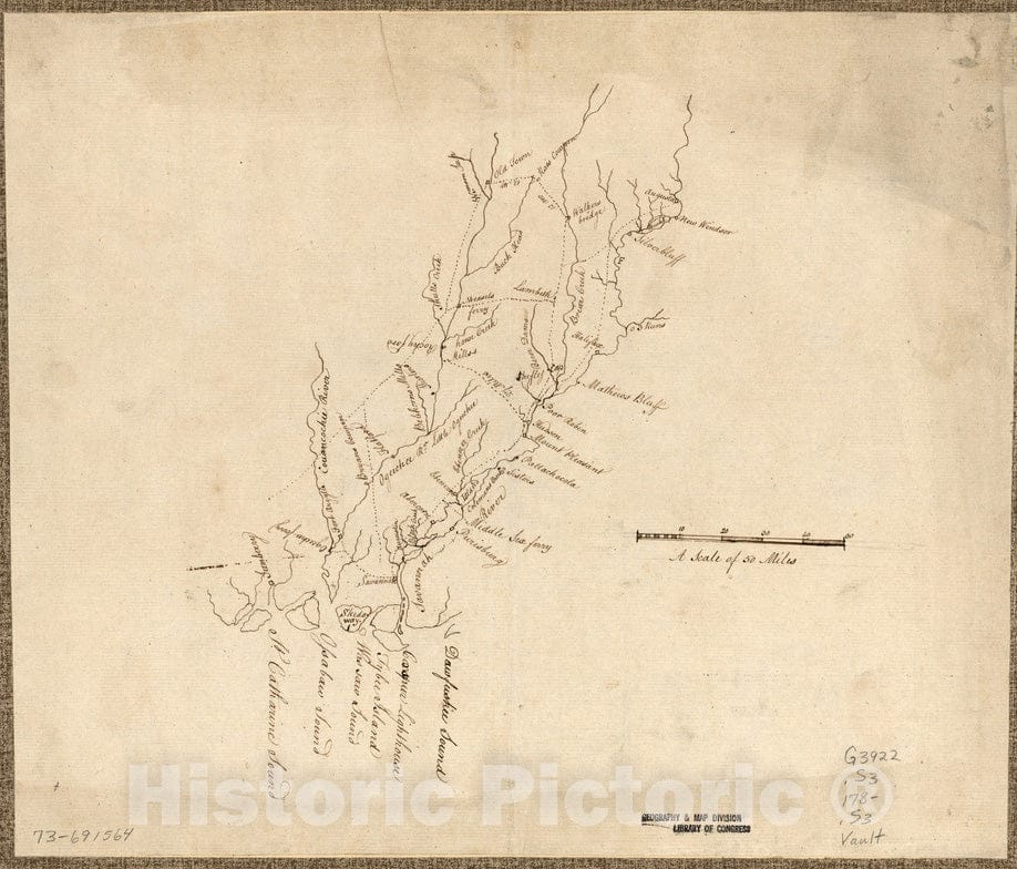 Historical Map, 1780-1789 Savannah River & Ogeechee River, Vintage Wall Art