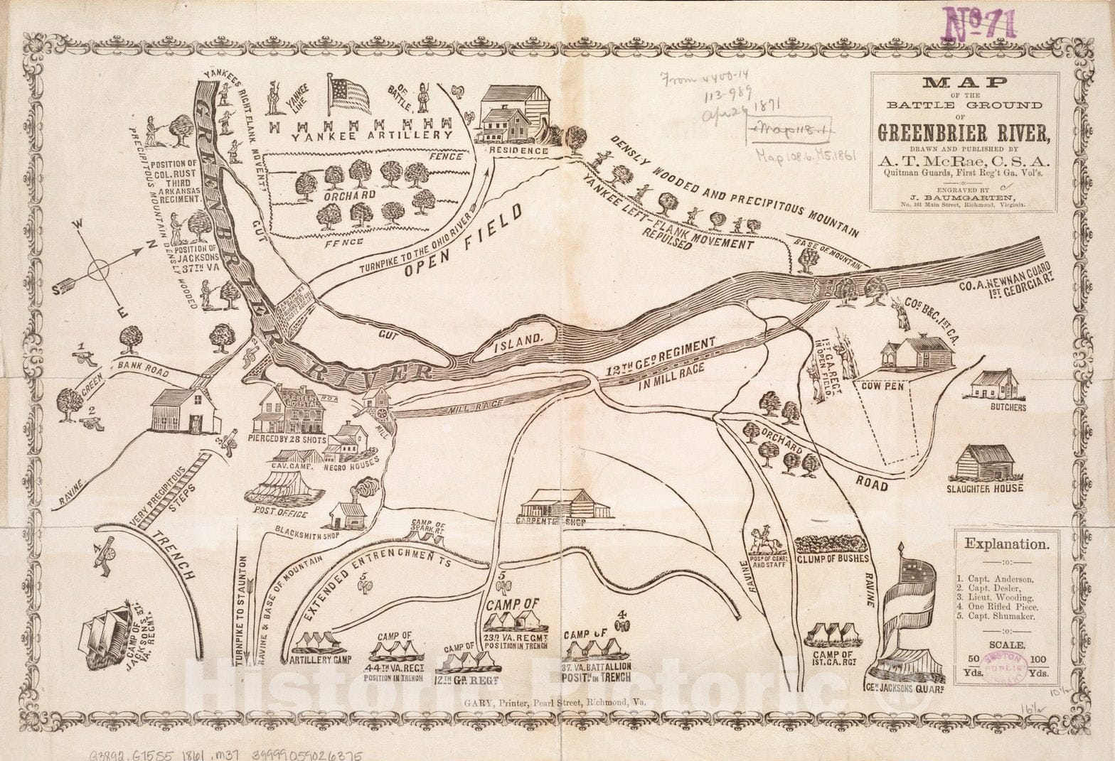 Historical Map, 1861 Map of the battle ground of Greenbrier River, Vintage Wall Art