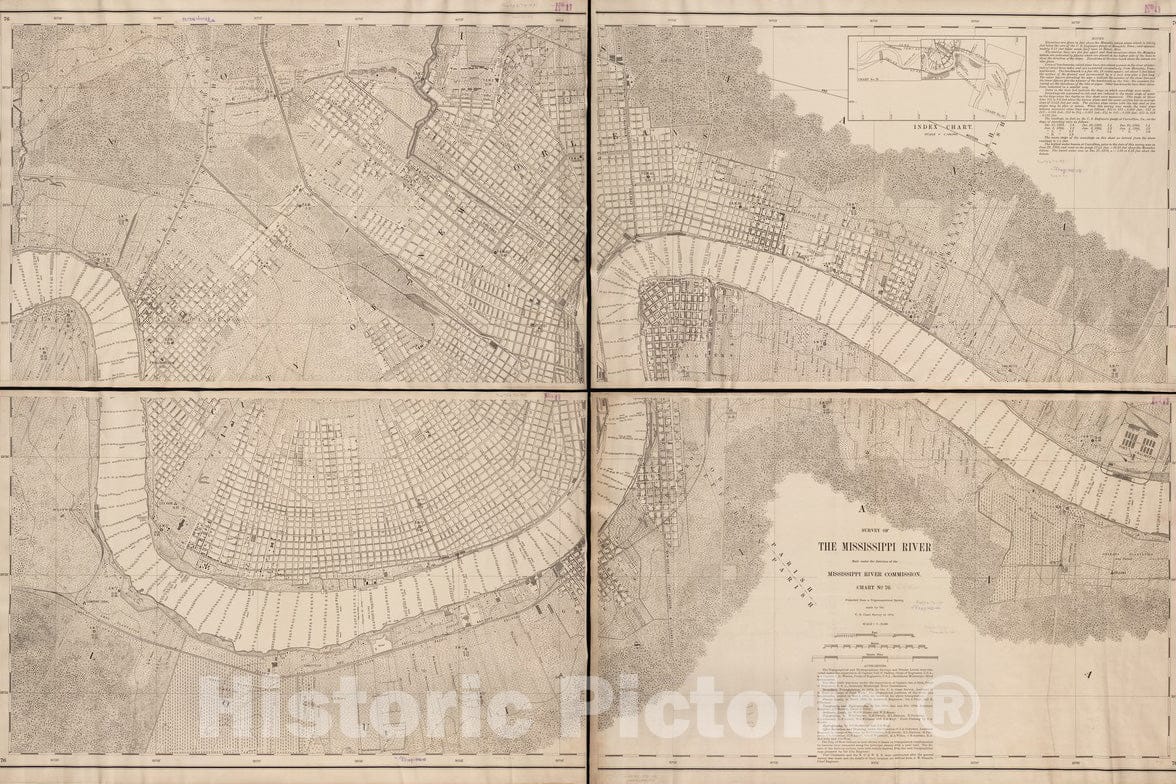 • .Historical Map, 1895 A Survey of The Mississippi River, Vintage Wall Art