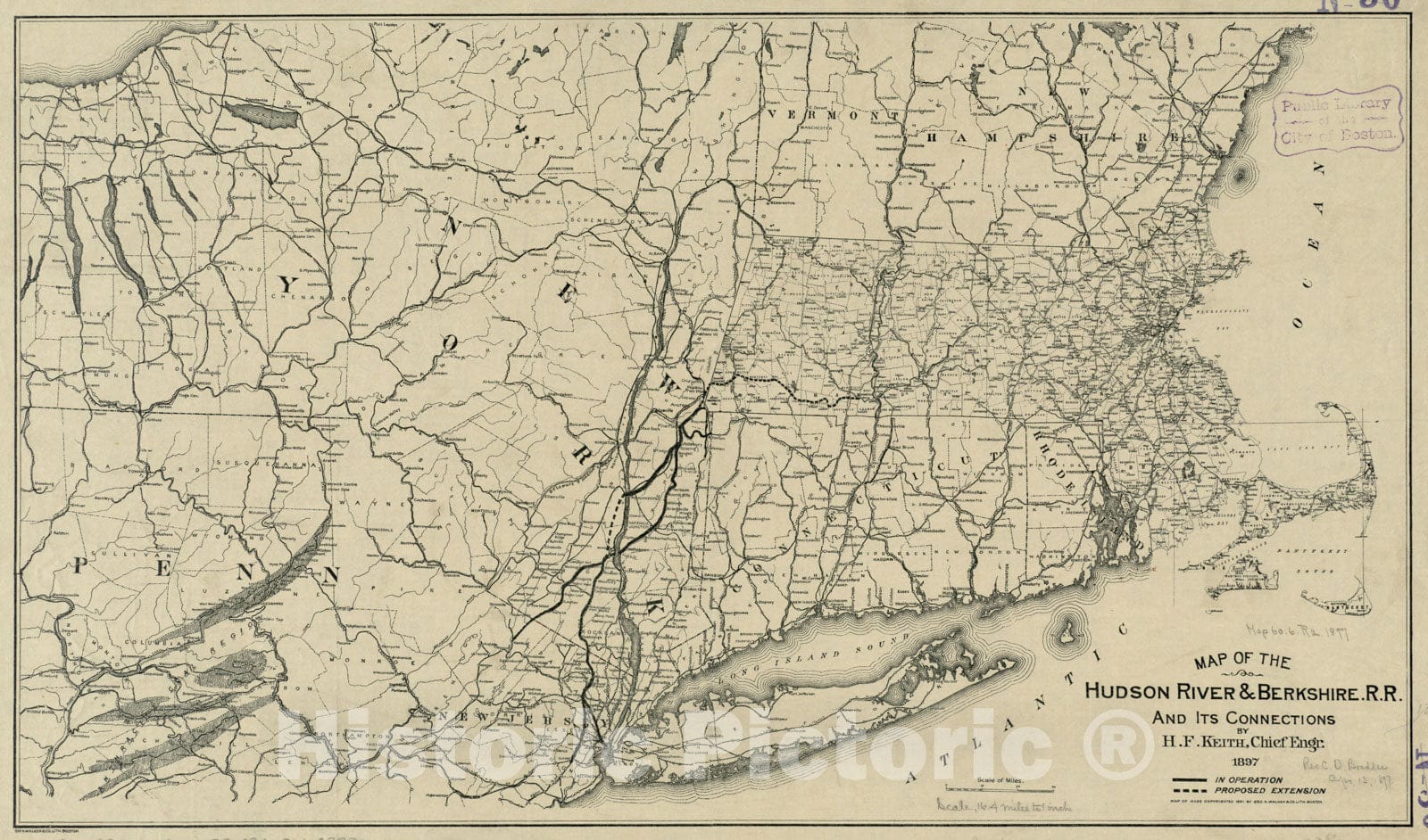 Historical Map, 1897 Map of The Hudson River & Berkshire R. R. and its Connections, Vintage Wall Art