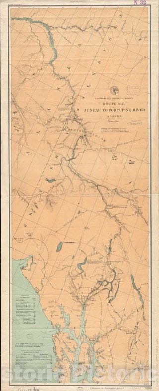 • Historical Map, 1897 Route Historical Map, Juneau to Porcupine River, Alaska, Vintage Wall Art