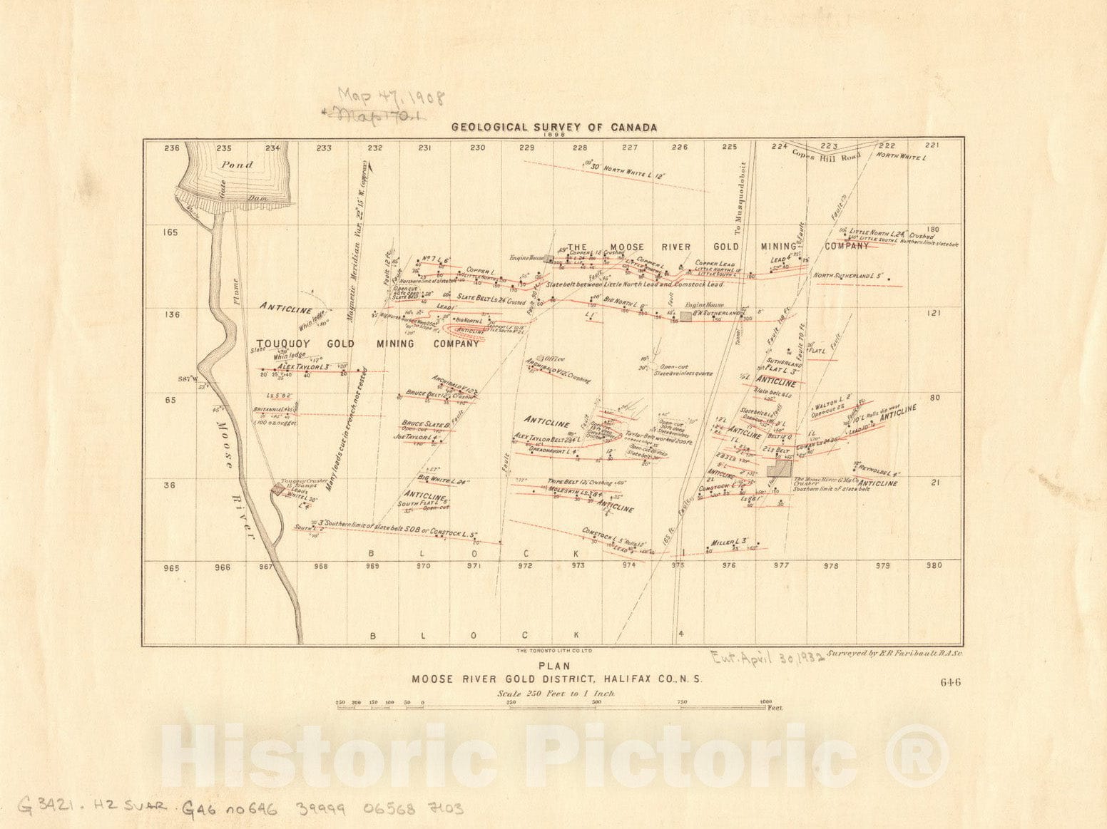 Historical Map, 1898 Plan Moose River gold district, Halifax Co, N.S, Vintage Wall Art