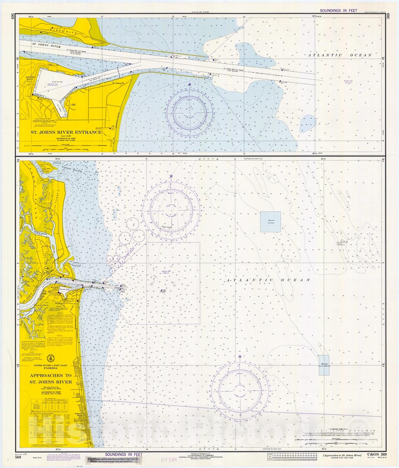 Historic Nautical Map - Approaches To St. Johns River, 1972 NOAA Chart - Florida (FL) - Vintage Wall Art
