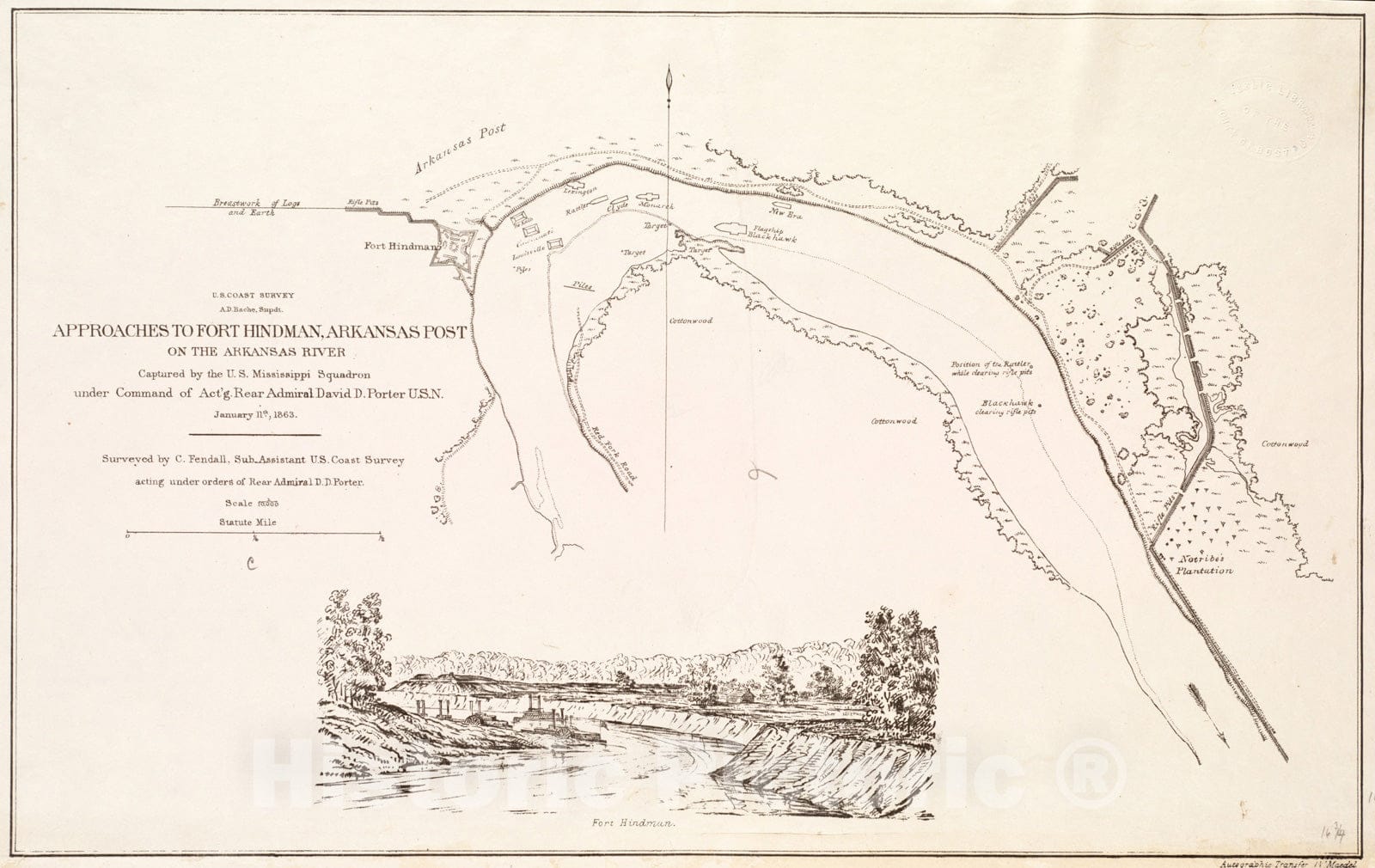 Historical Map, Approaches to Fort Hindman, Arkansas Post, on the Arkansas River : captured by the U.S. Mississippi Squadron, under command of Act'g. Rear Admiral Dav, Vintage Wall Art