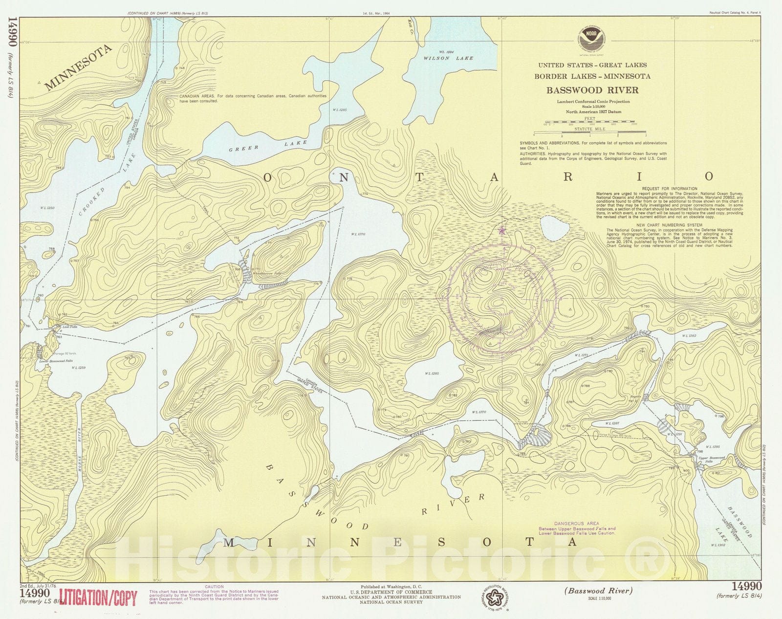 Historic Nautical Map - Basswood River, MN, 1976 NOAA Chart - Vintage Wall Art