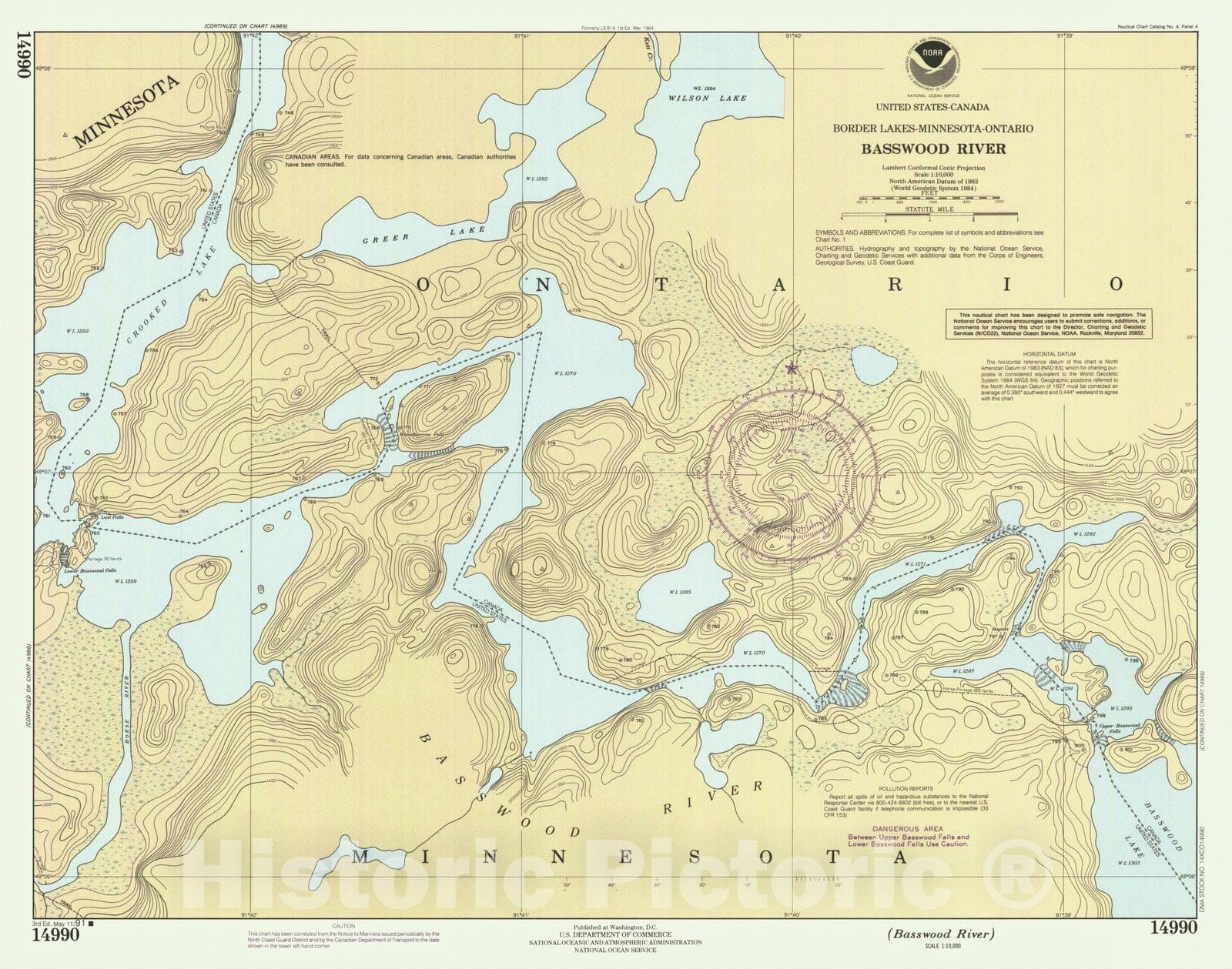 Historic Nautical Map - Basswood River, MN, 1991 NOAA Chart - Vintage Wall Art