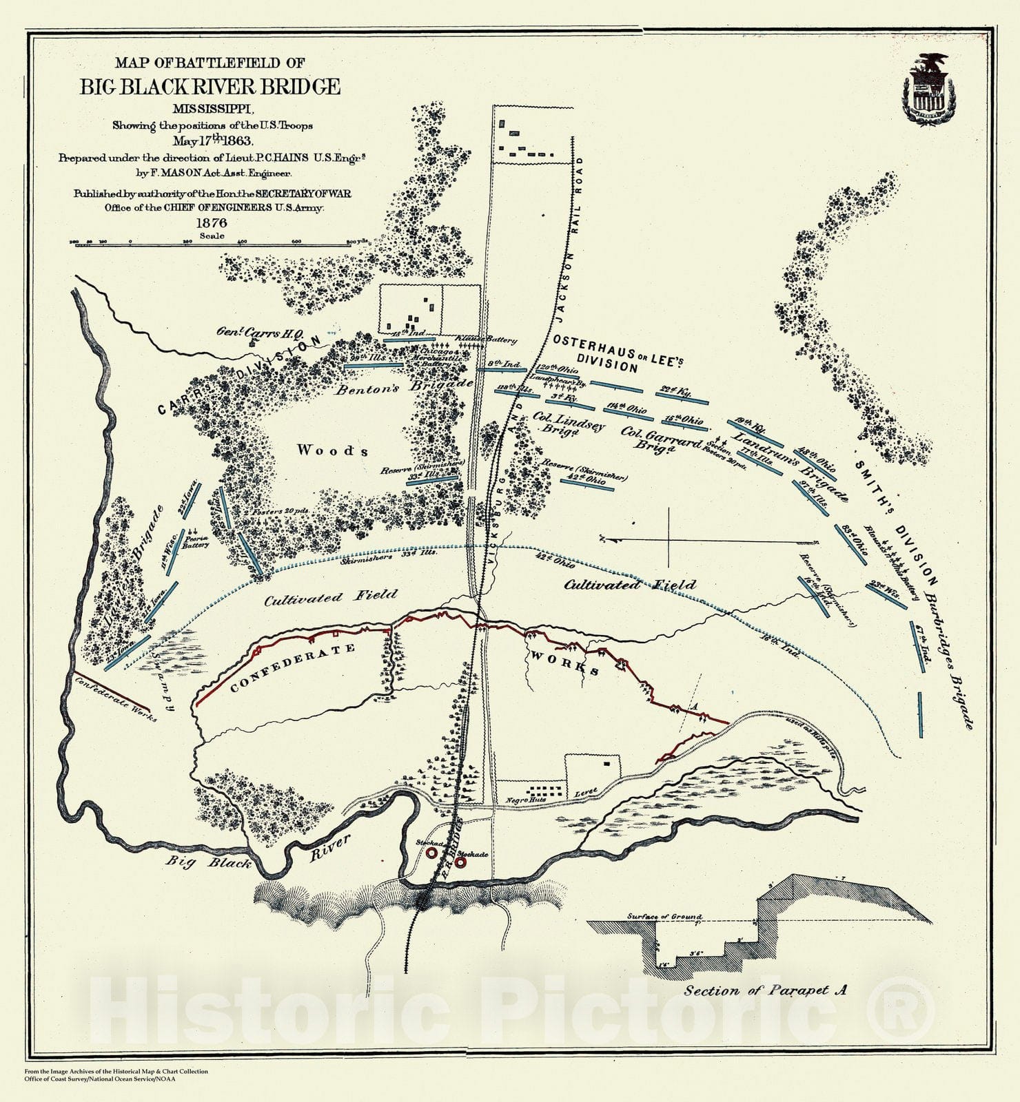 Historic Nautical Map - Big Black River Bridge, MS, 1876 Civil War Historic Nautical Map - Vintage Wall Art