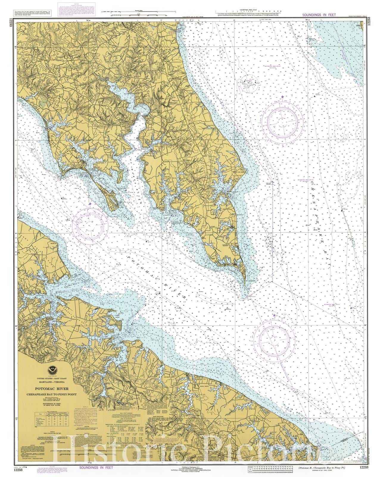 Historical Potomac River - Chesapeake Bay To Piney Pt | 18in x 24in 1983 Nautical Chart | VA, MD Vintage Map | Fine Art Reproduction Print