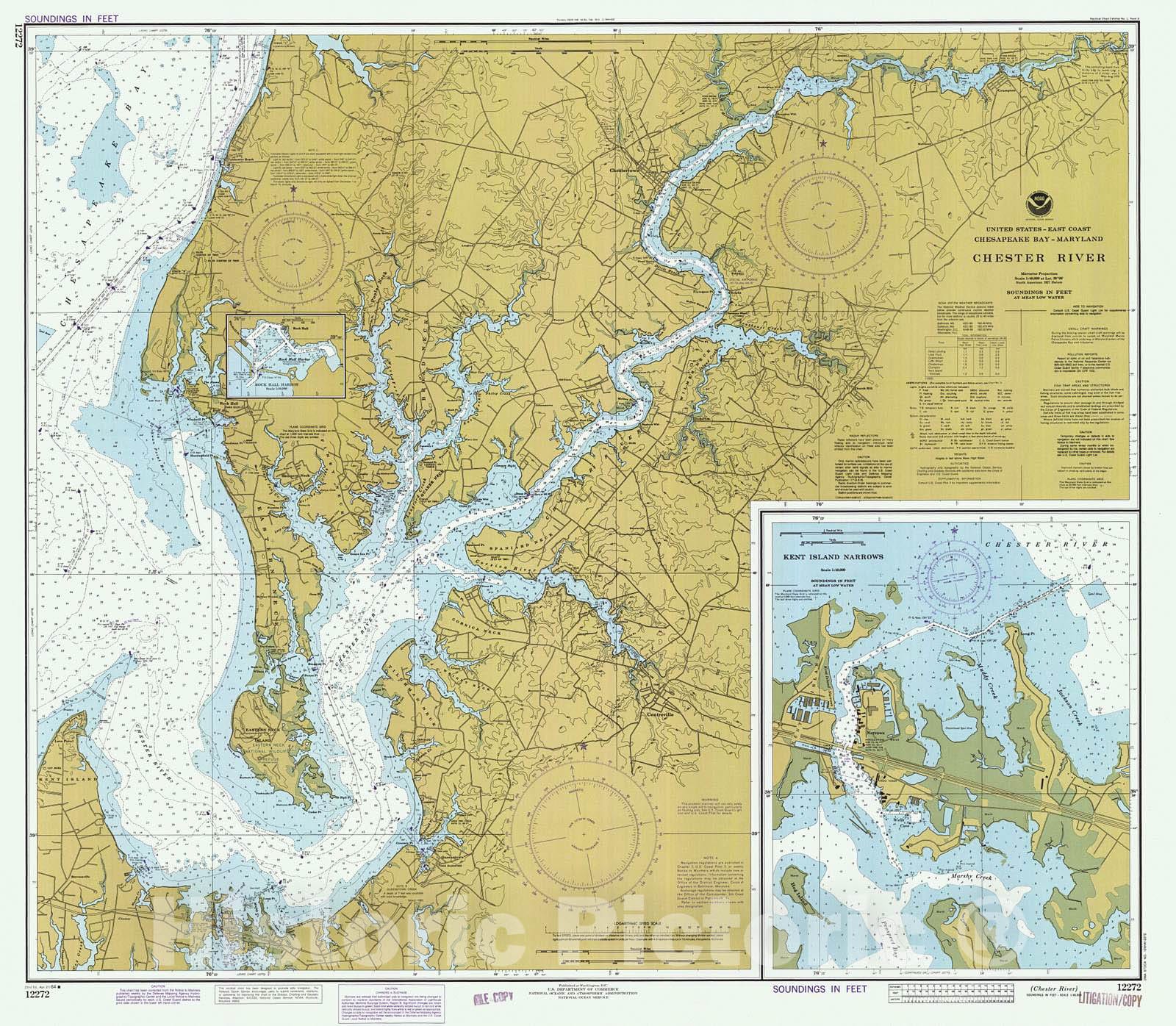 Historical Chester River | 30in x 26in 1984 Nautical Chart | MD Vintage Map | Fine Art Reproduction Print