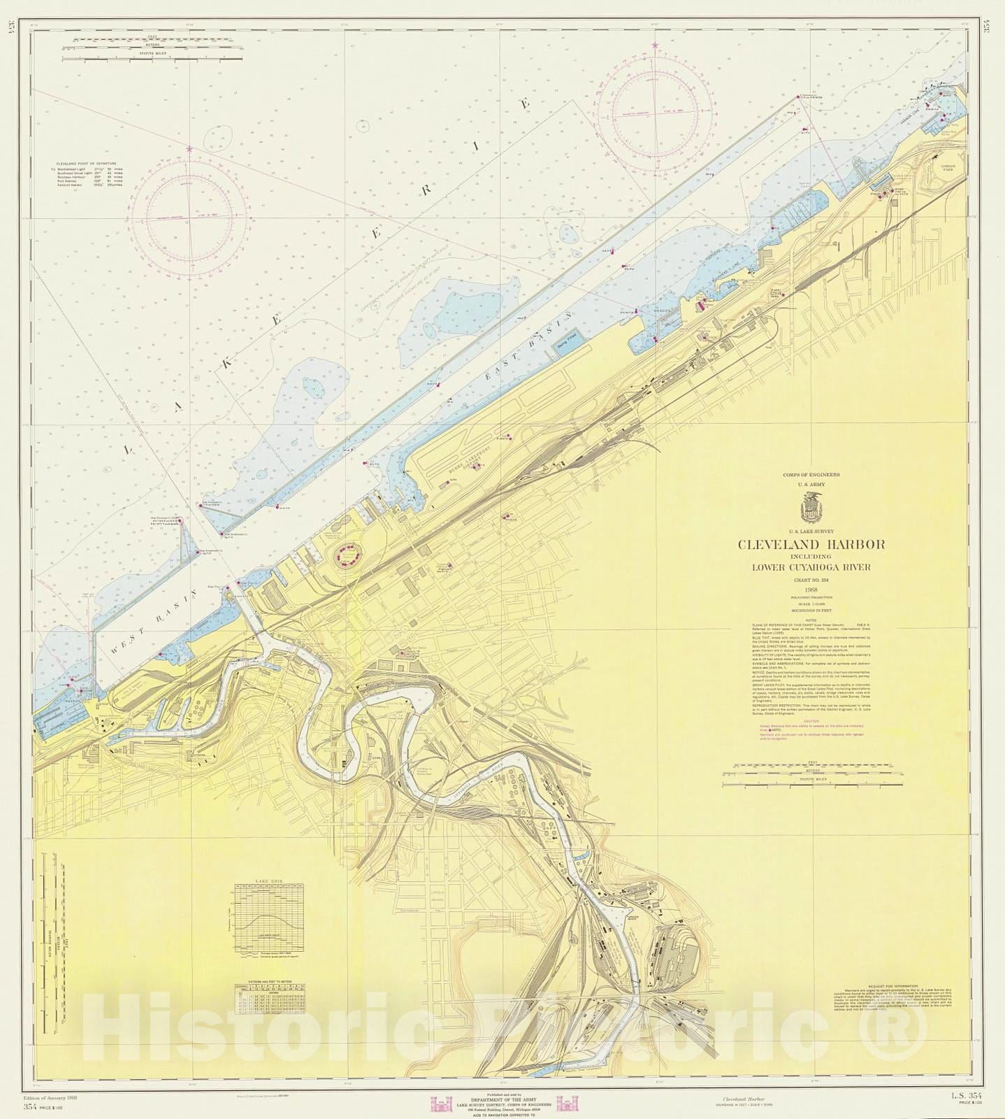 Historic Nautical Map - Cleveland Harbor Including Lower Cuyahoga River, 1968 NOAA Chart - Ohio (OH) - Vintage Wall Art