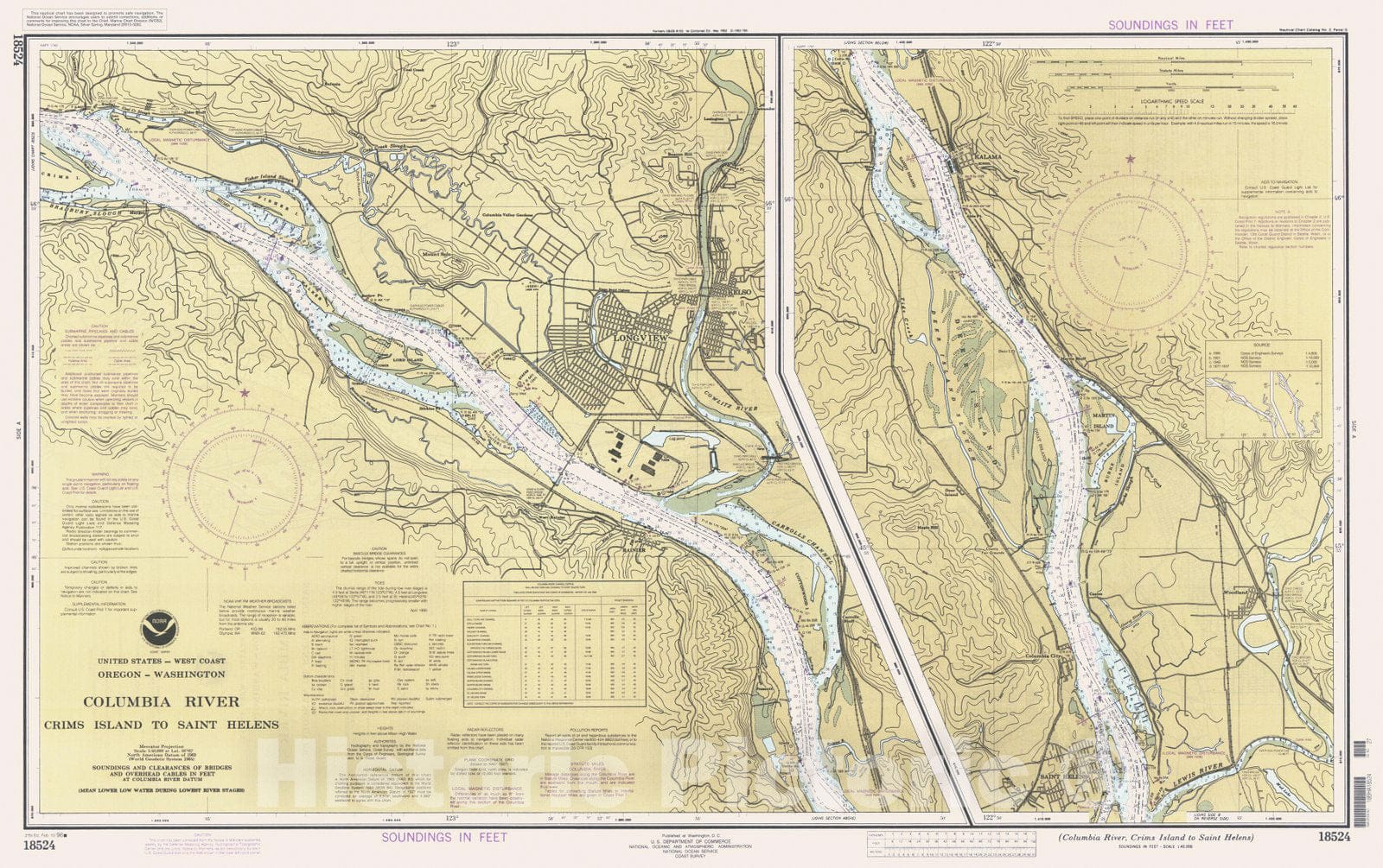 • .Historic Nautical Map - Columbia River Crims Island To Saint Helens, OR, WA, 1996 NOAA Chart - Vintage Wall Art