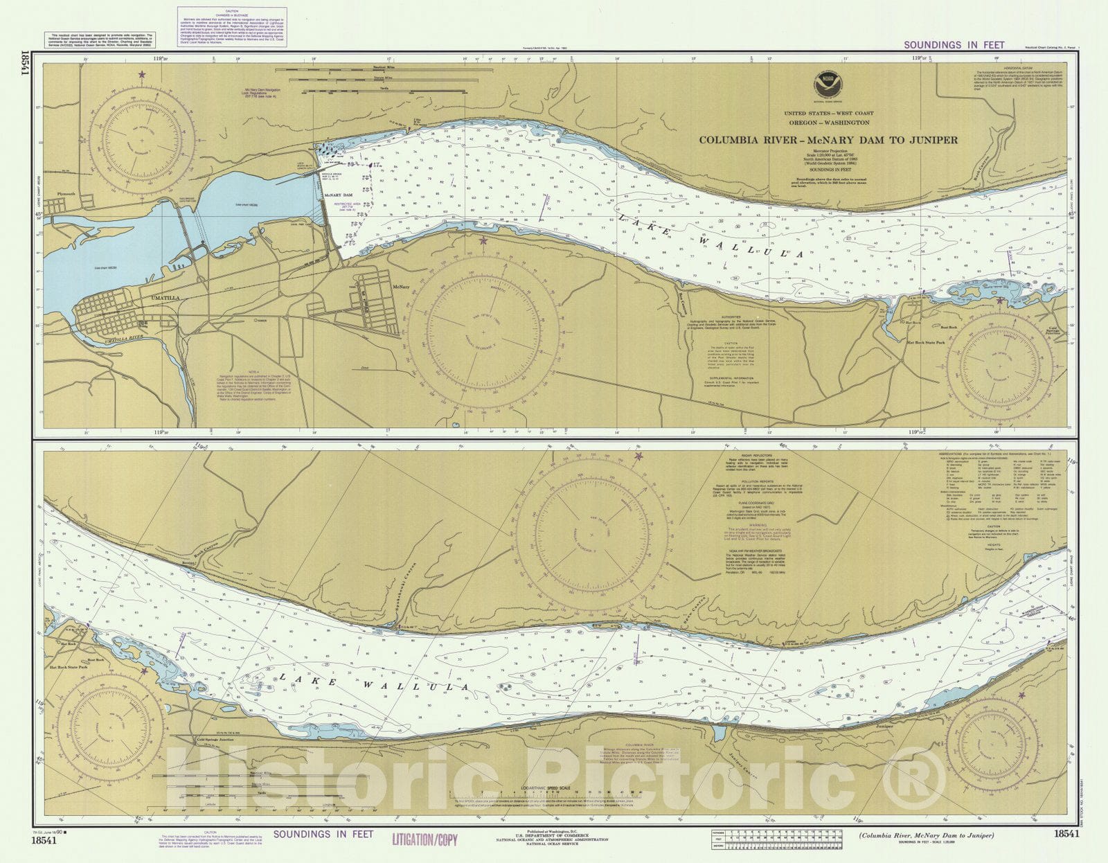 Historic Nautical Map - Columbia River Mcnary Dam To Juniper, OR, WA, 1990 NOAA Chart - Vintage Wall Art