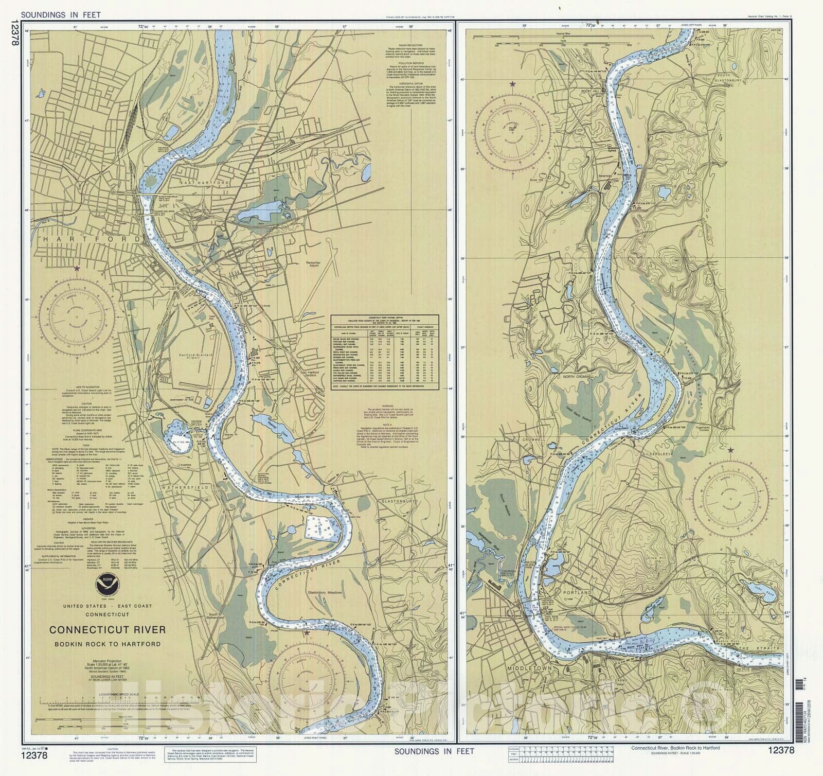 Historic Nautical Map - Connecticut River - Bodkin Rock To Hartford, 2001 NOAA Chart - Connecticut (CT) - Vintage Wall Art