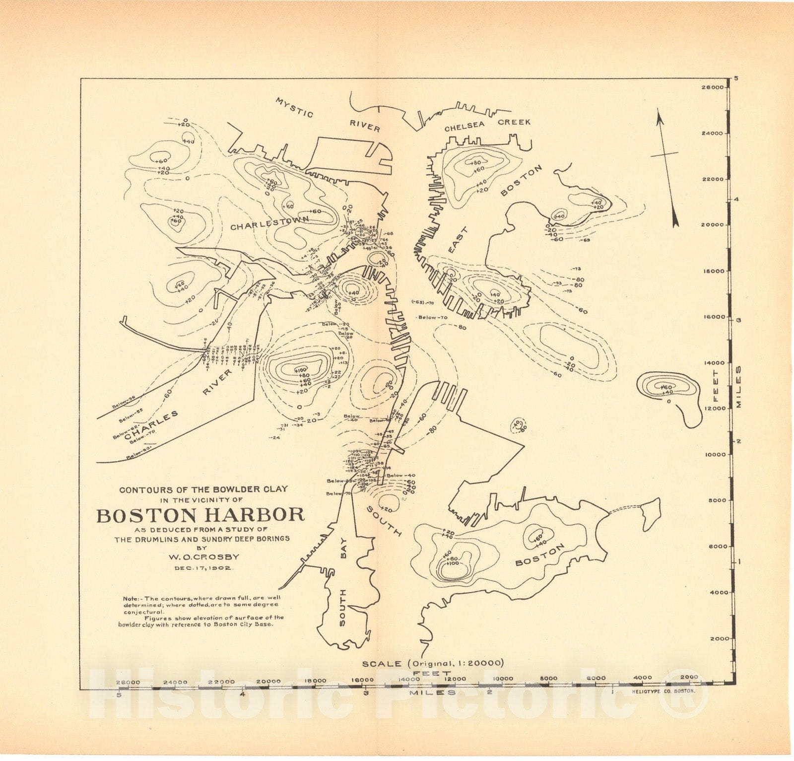 Historic Map : Contours of Bowlder Clay in Boston Harbor 1902 Charles River Dam Report , Vintage Wall Art