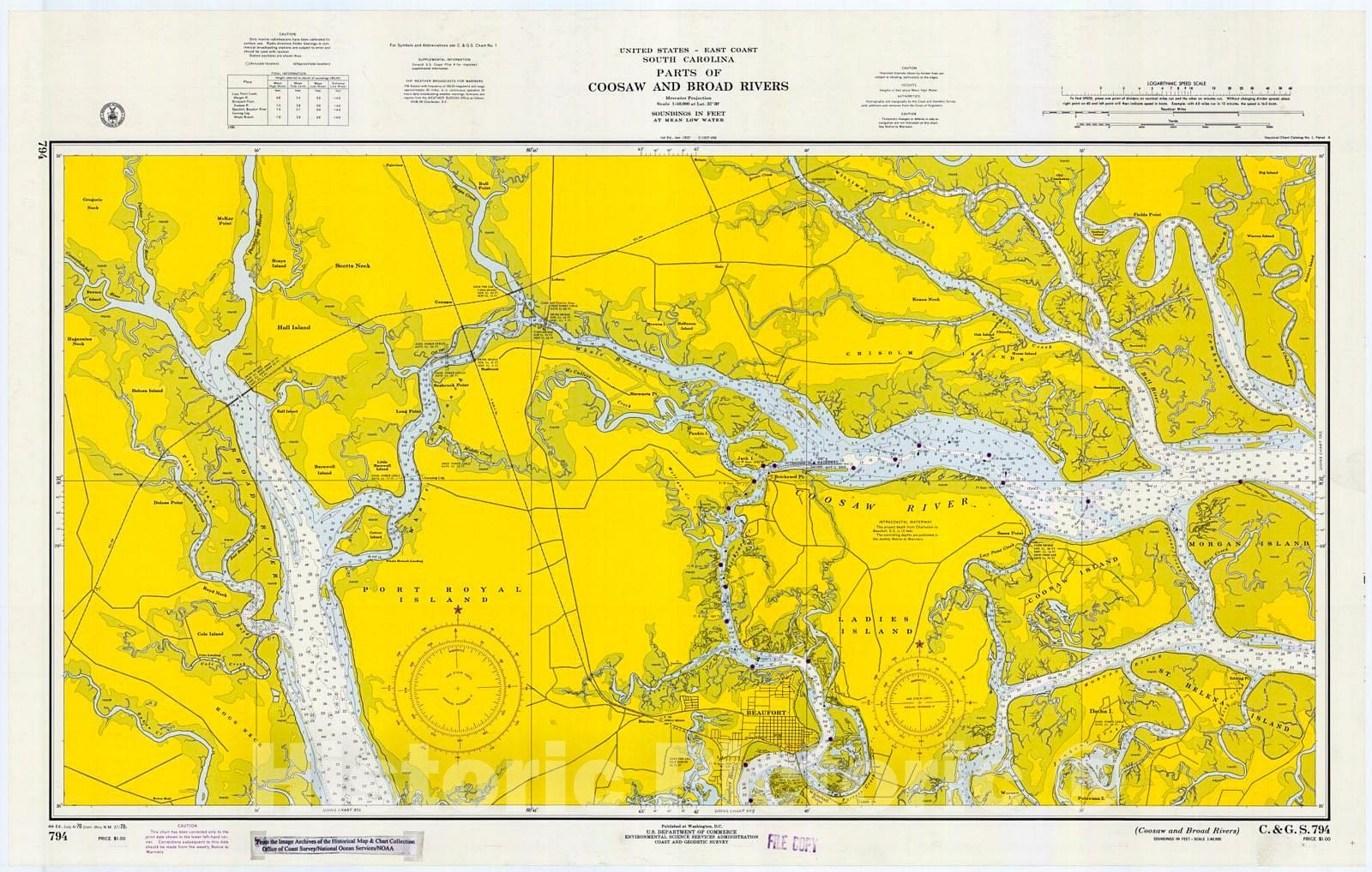 • .Historic Nautical Map - Coosaw And Broad Rivers, 1970 NOAA Chart - South Carolina (SC) - Vintage Wall Art
