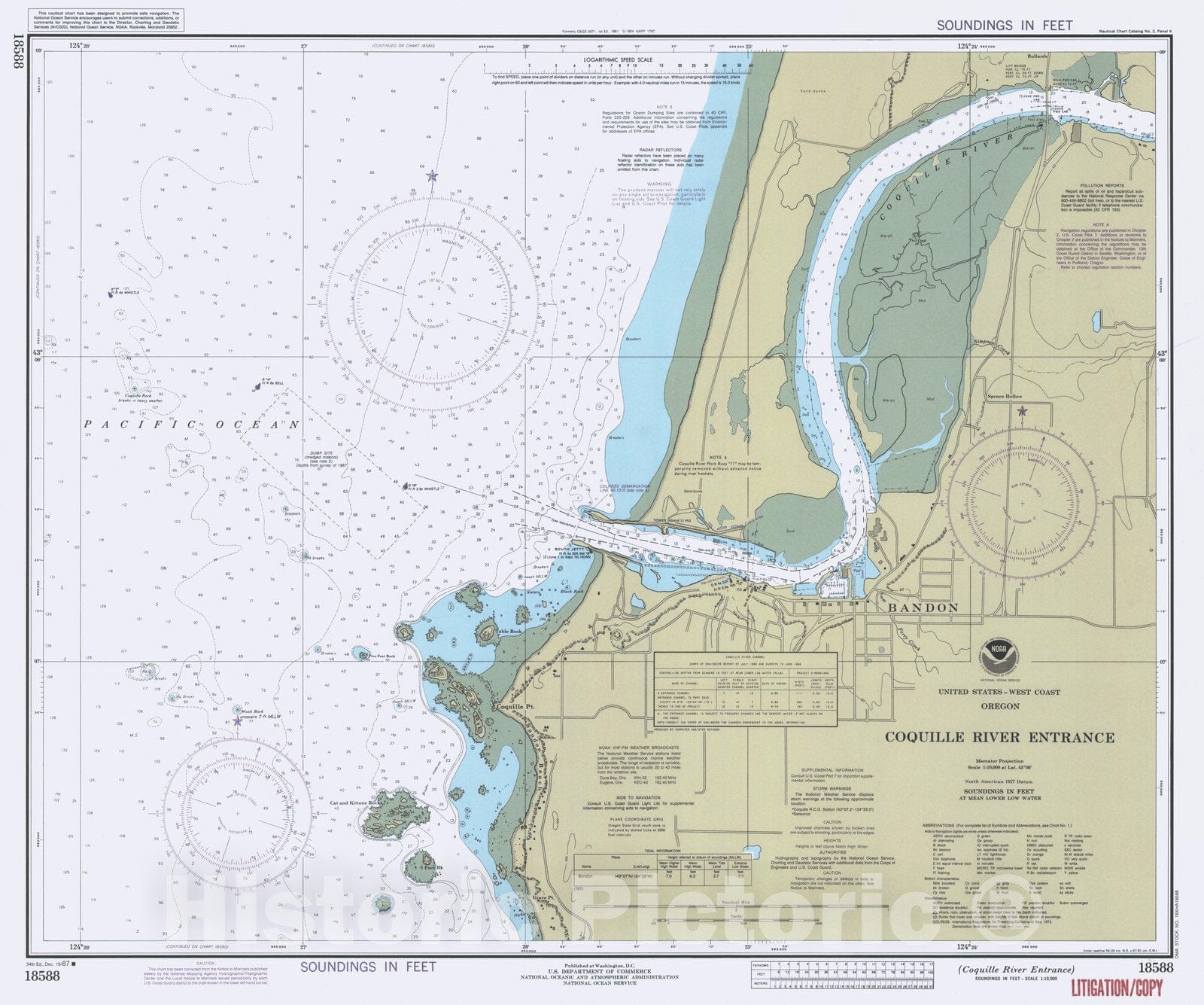 Historic Nautical Map - Coquille River Entrance, OR, 1987 NOAA Chart - Vintage Wall Art