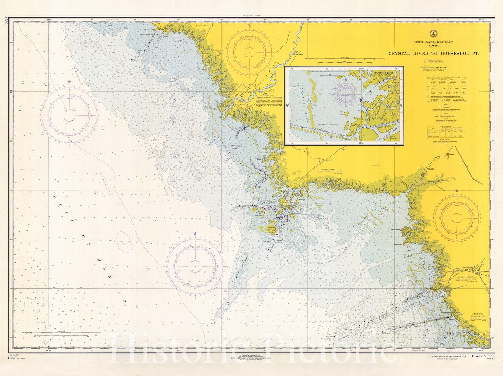 Historic Nautical Map - Crystal River To Horseshoe Pt, 1967 NOAA Chart - Florida (FL) - Vintage Wall Art