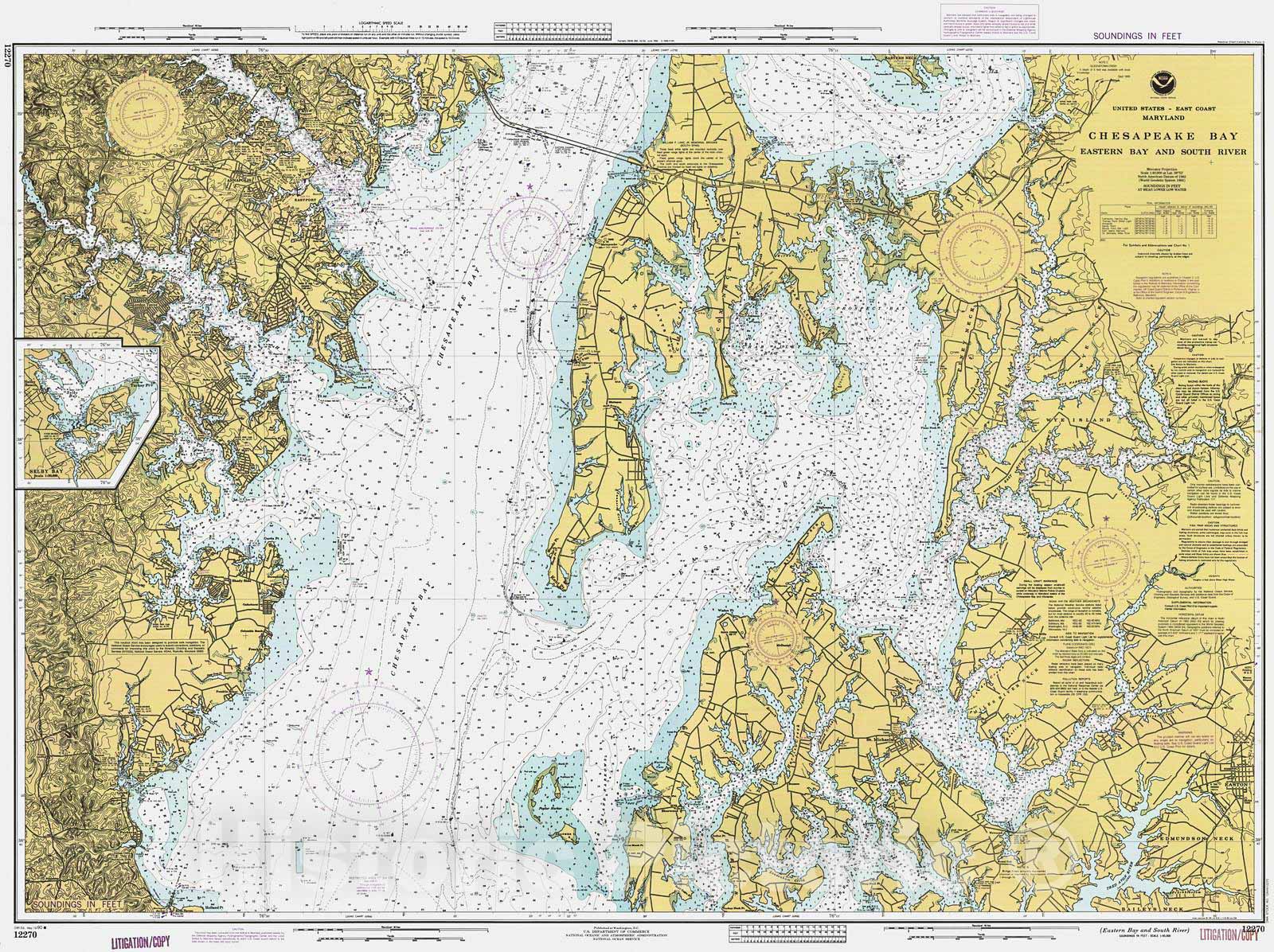 Historic Nautical Map - Eastern Bay And South River, 1990 NOAA Chart - Maryland (MD) - Vintage Wall Art