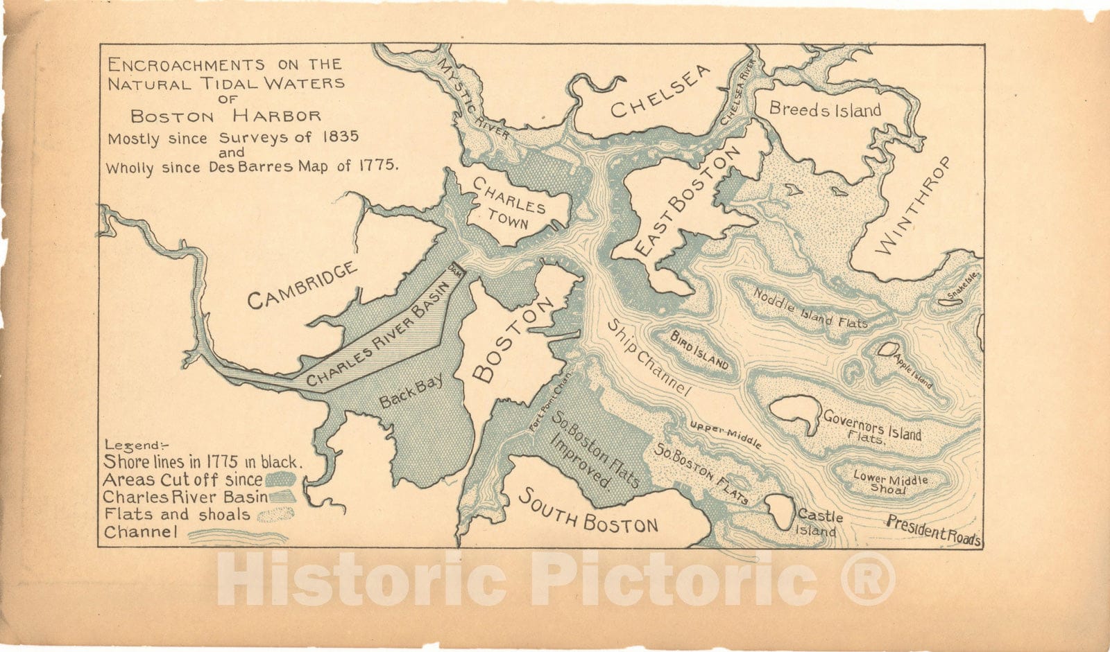 Charles River Dam Report (maps dated 1902), Encroachments on Boston Harbor 1902