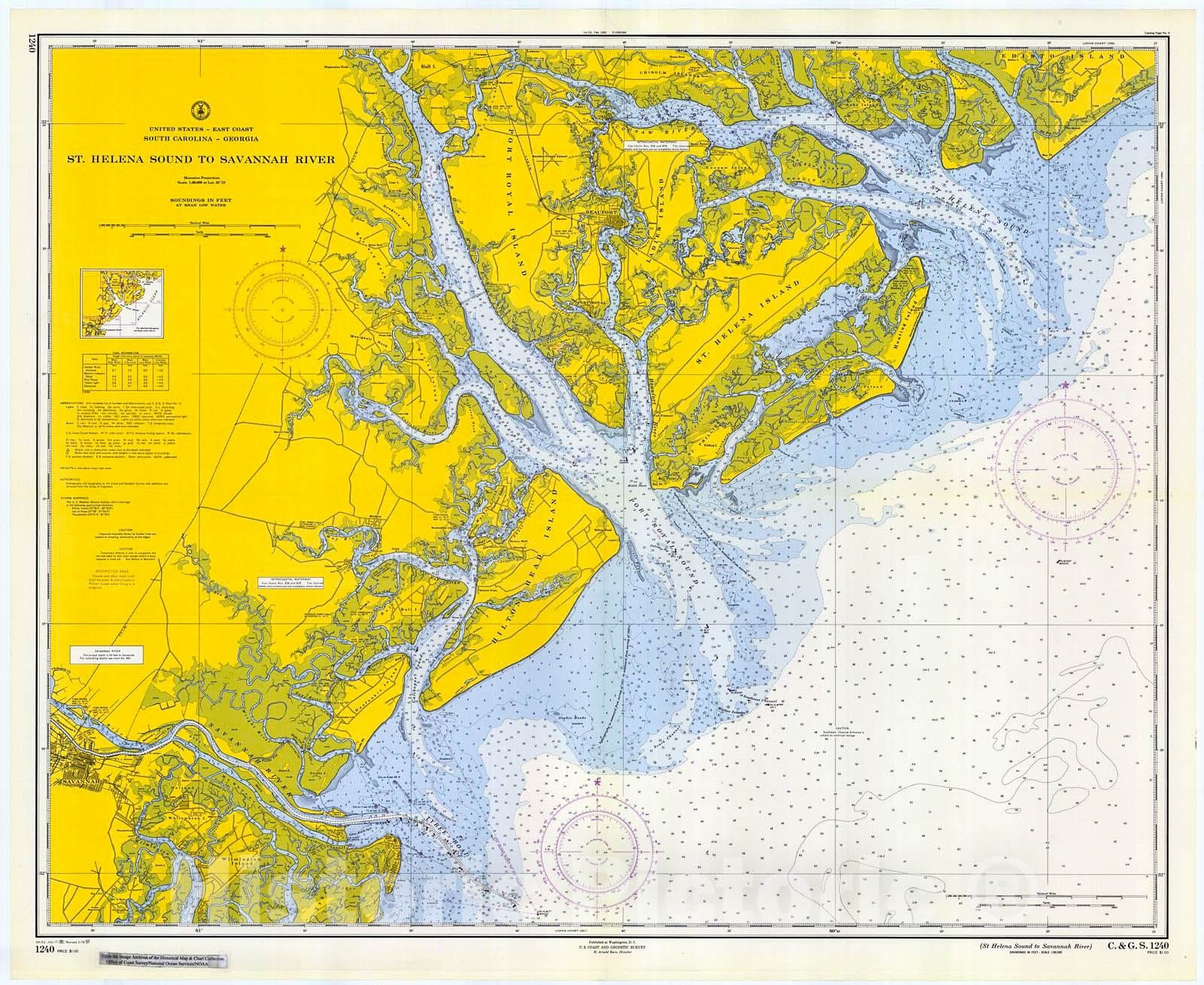 Historic Nautical Map - St. Helena Sound To Savannah River, 1957 NOAA Chart - South Carolina (SC) - Vintage Wall Art