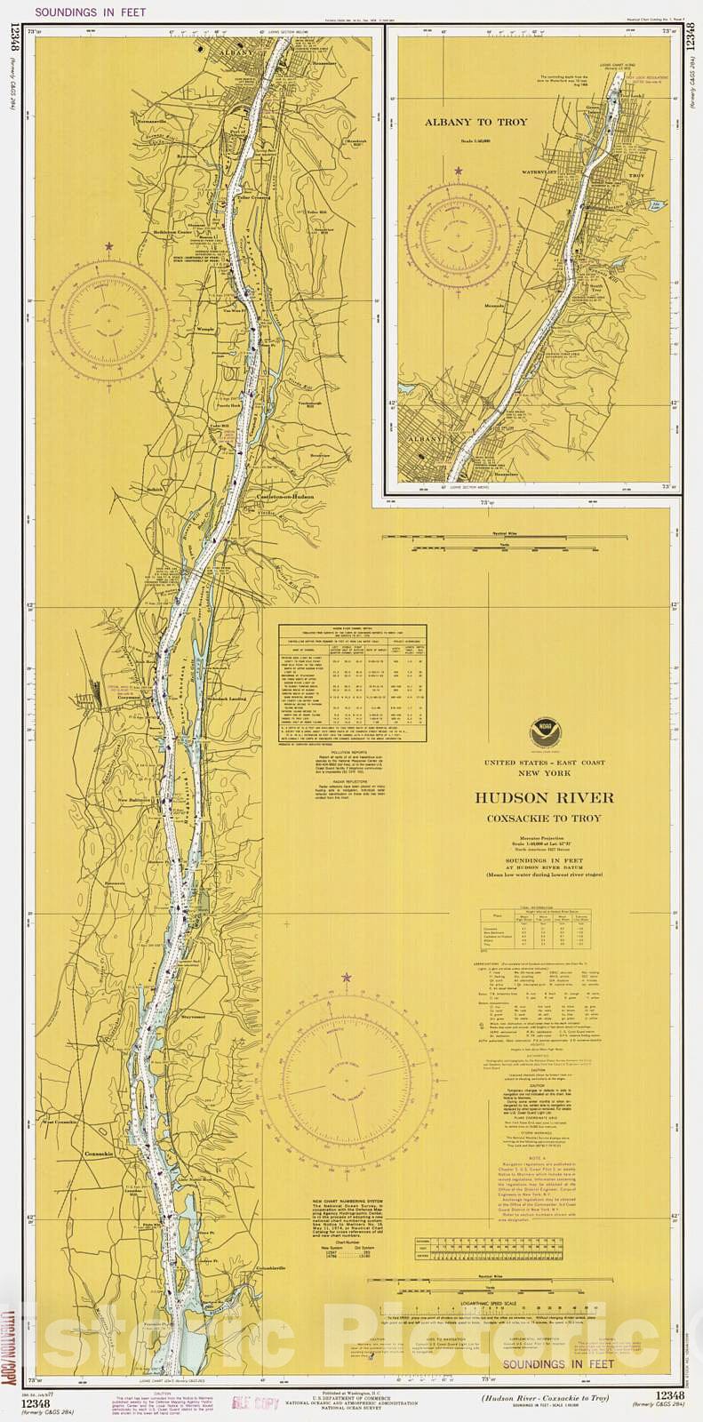 • .Historic Nautical Map - Hudson River - Coxsackie To Troy, 1977 NOAA Chart - New York (NY) - Vintage Wall Art