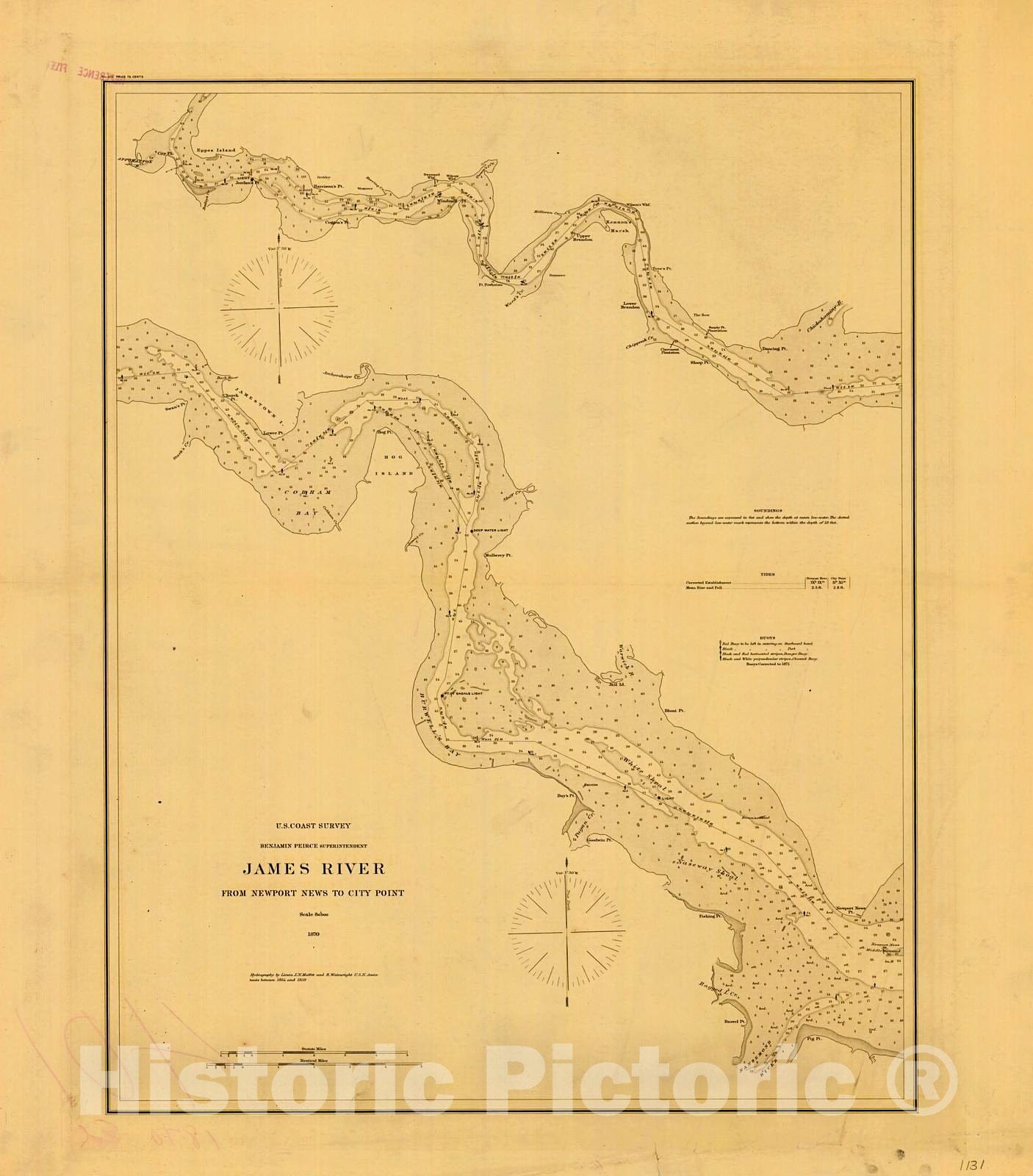 Historic Nautical Map - James River From Newport News To City Point, 1870 NOAA Chart - Virginia (VA) - Vintage Wall Art