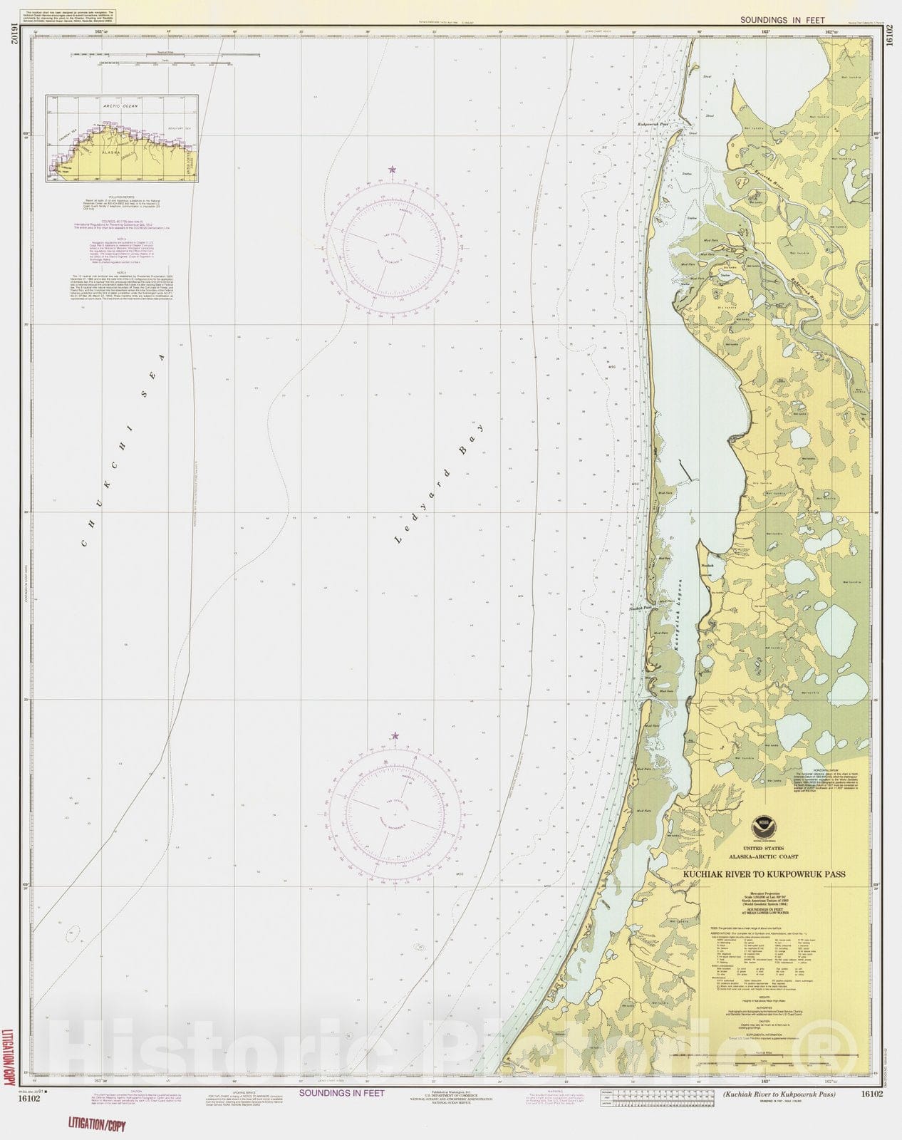 Historic Nautical Map - Kuchiak River To The Kukpowruk Pass, AK, 1991 NOAA Chart - Vintage Wall Art