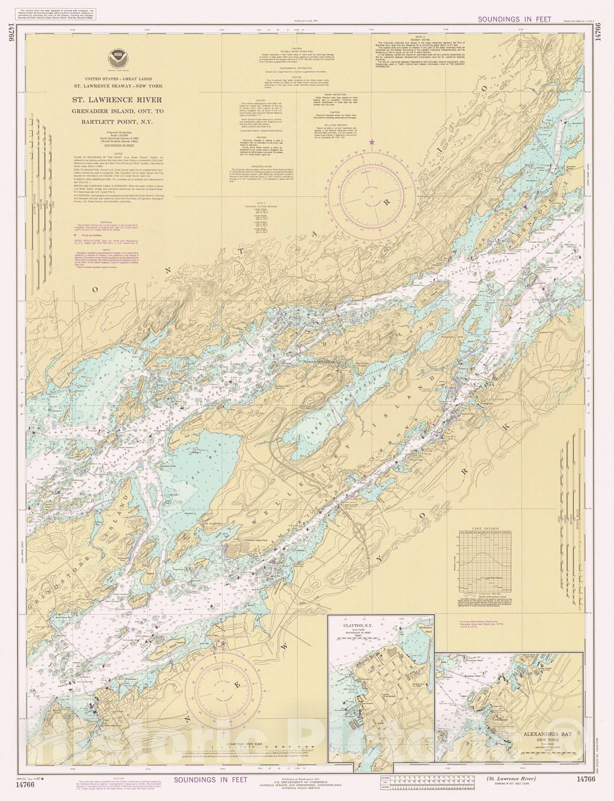 • .Historic Nautical Map - St Lawrence River Grenader Island Ont To Bartlett Point Ny, 1990 NOAA Chart - New York (NY) - Vintage Wall Art