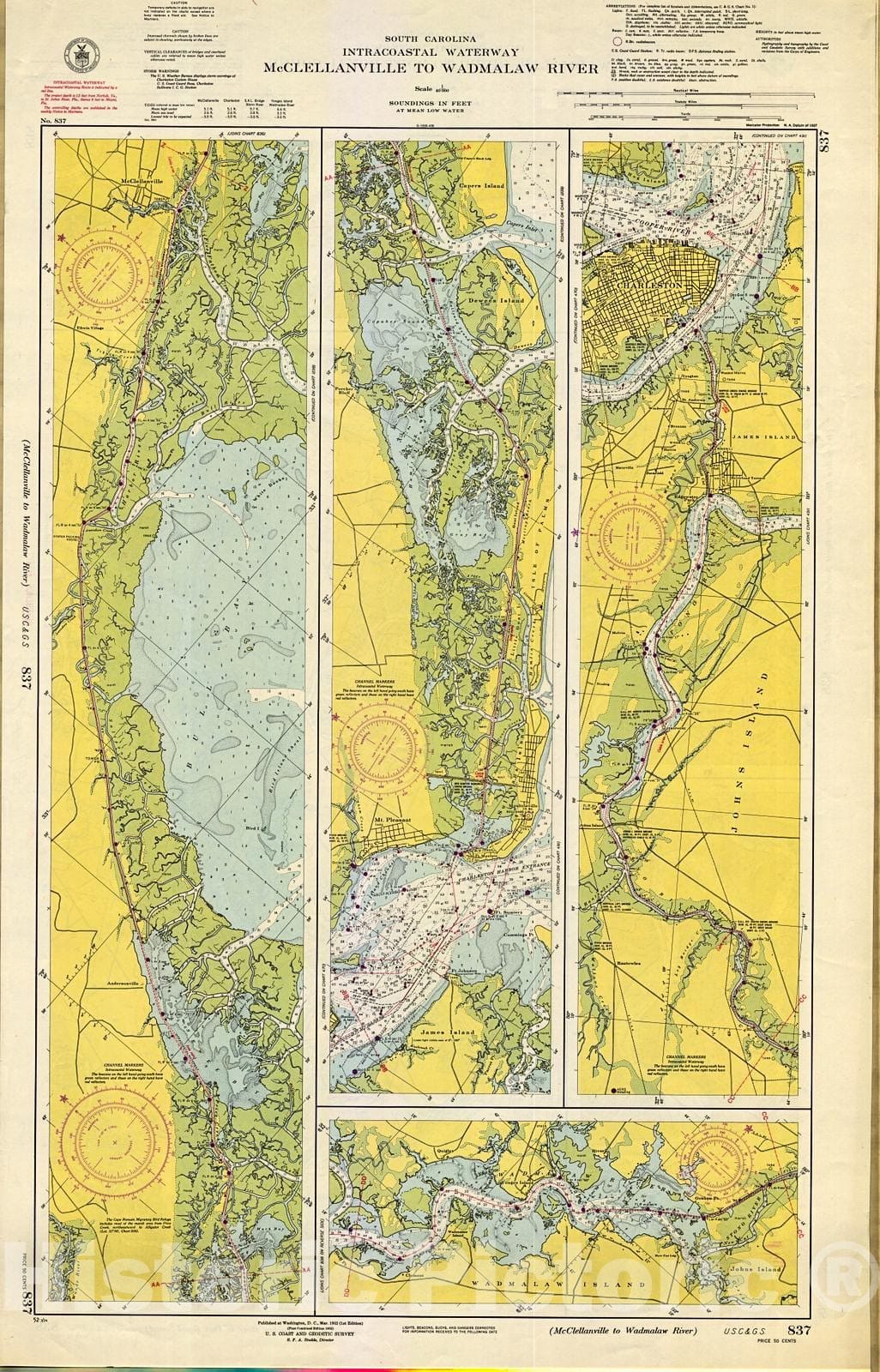 Historic Nautical Map - Mcclellanville To Wadmalaw River, 1952 NOAA Chart - South Carolina (SC) - Vintage Wall Art