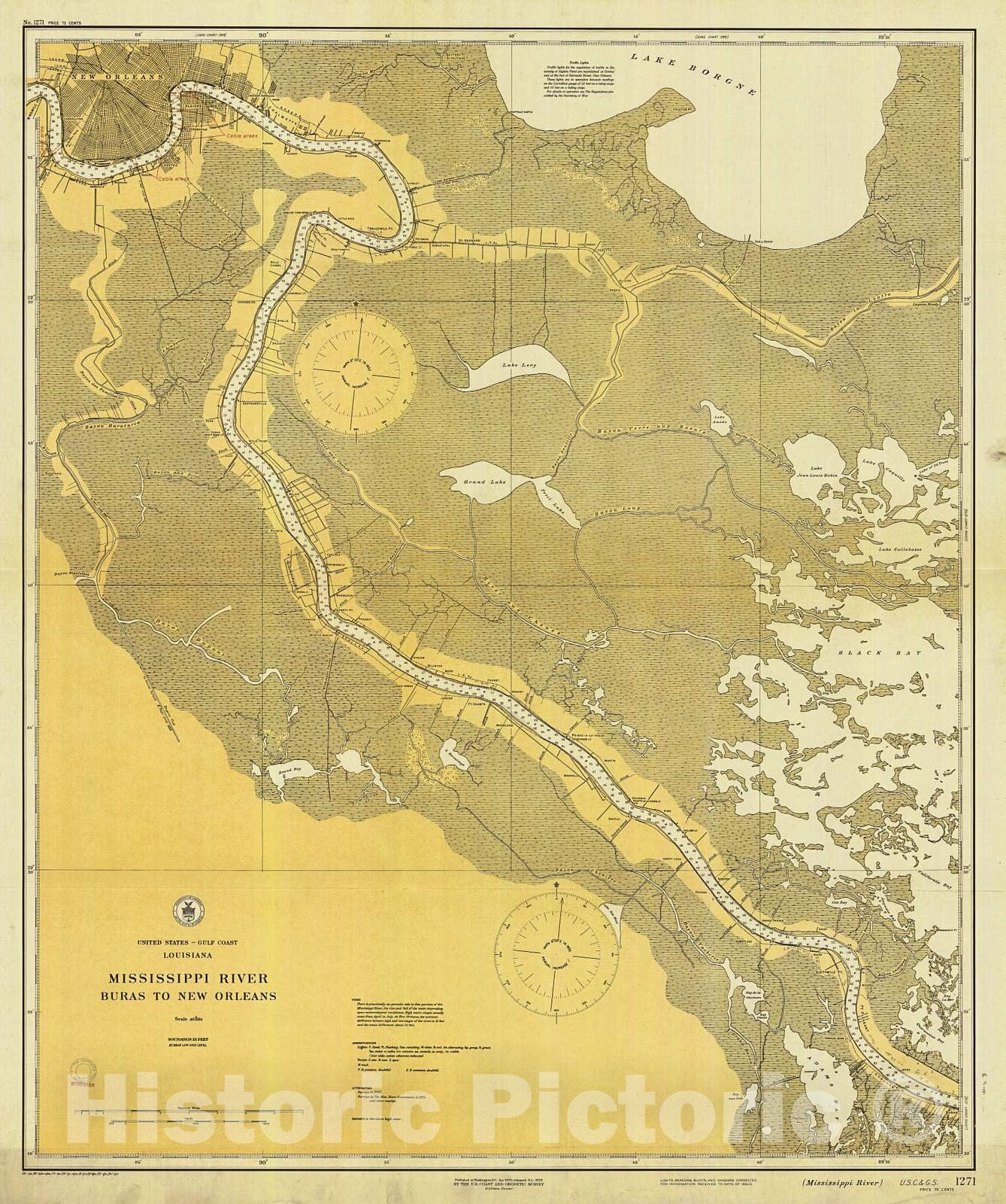 Historic Nautical Map - Mississippi River, 1934 NOAA Chart - Louisiana (LA) - Vintage Wall Art