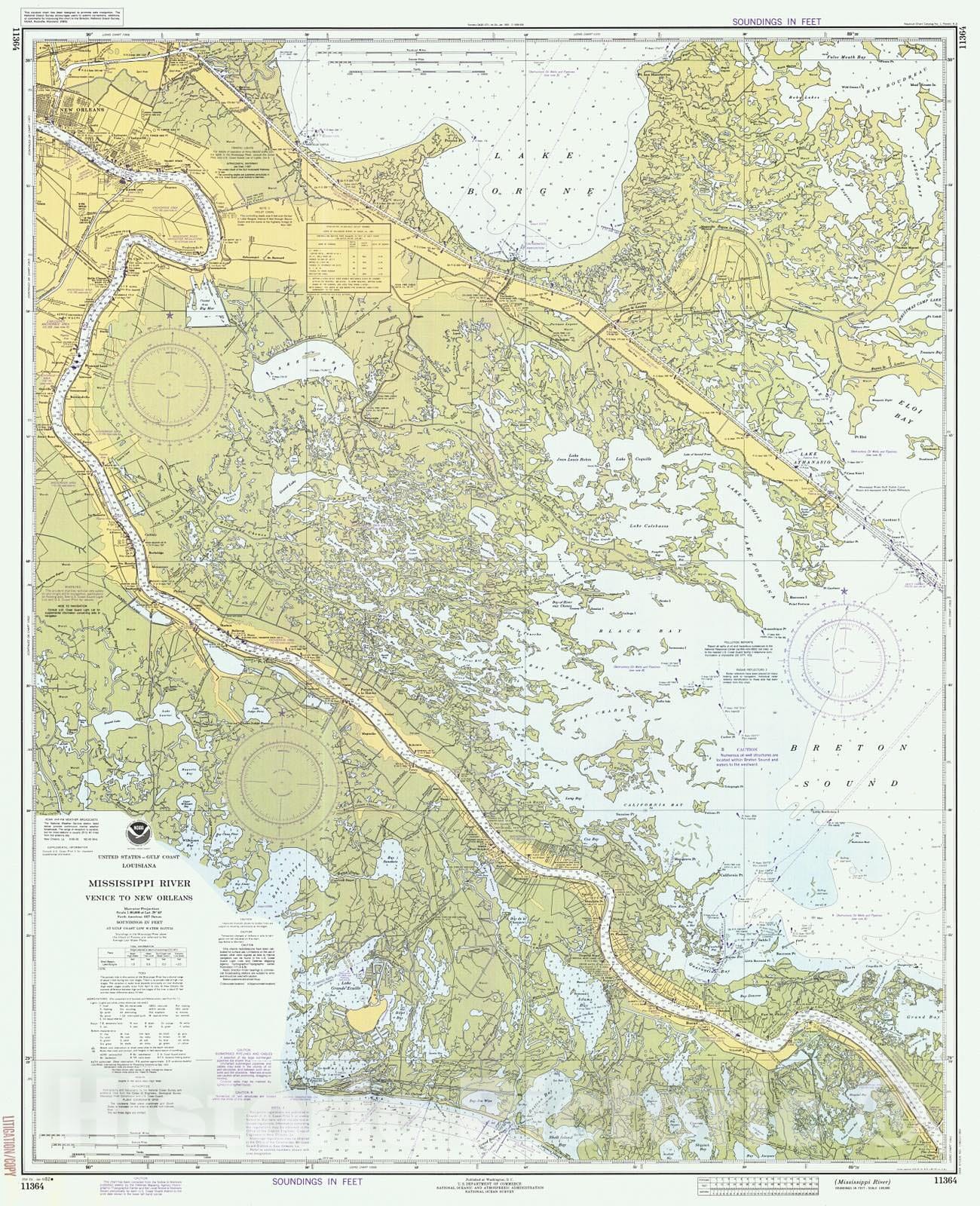 Historic Nautical Map - Mississippi River, 1982 NOAA Chart - Louisiana (LA) - Vintage Wall Art