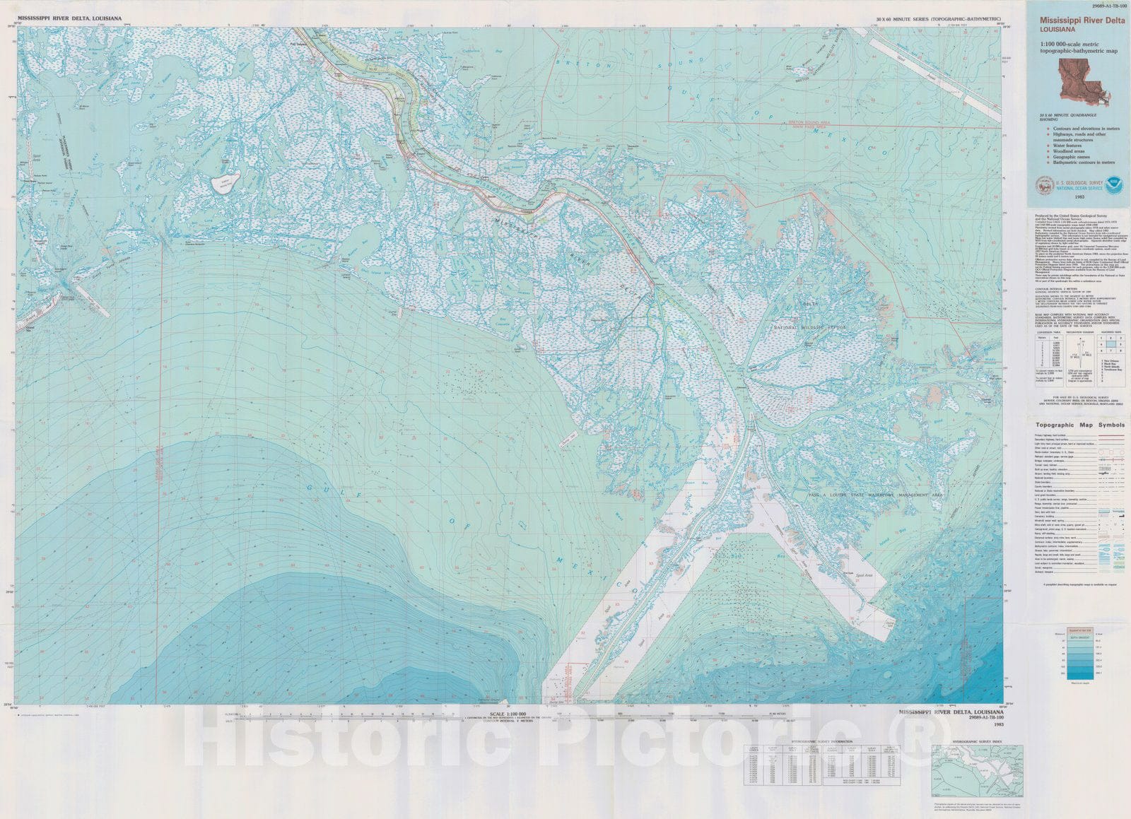 Historic Nautical Map - Mississippi River Delta, LA, 1983 NOAA Topographic Bathymetric Historic Nautical Map - Vintage Wall Art