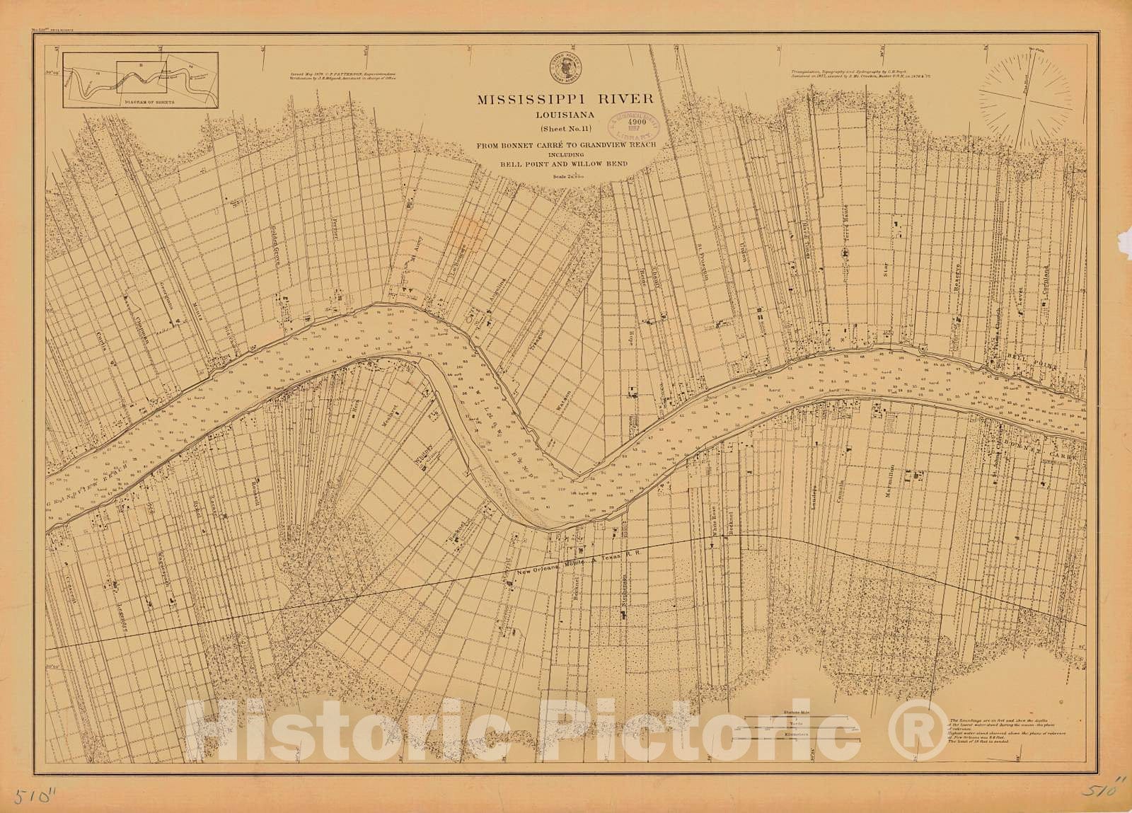 Historic Nautical Map - Mississippi River Sheet No.11, 1878 NOAA Chart - Louisiana (LA) - Vintage Wall Art