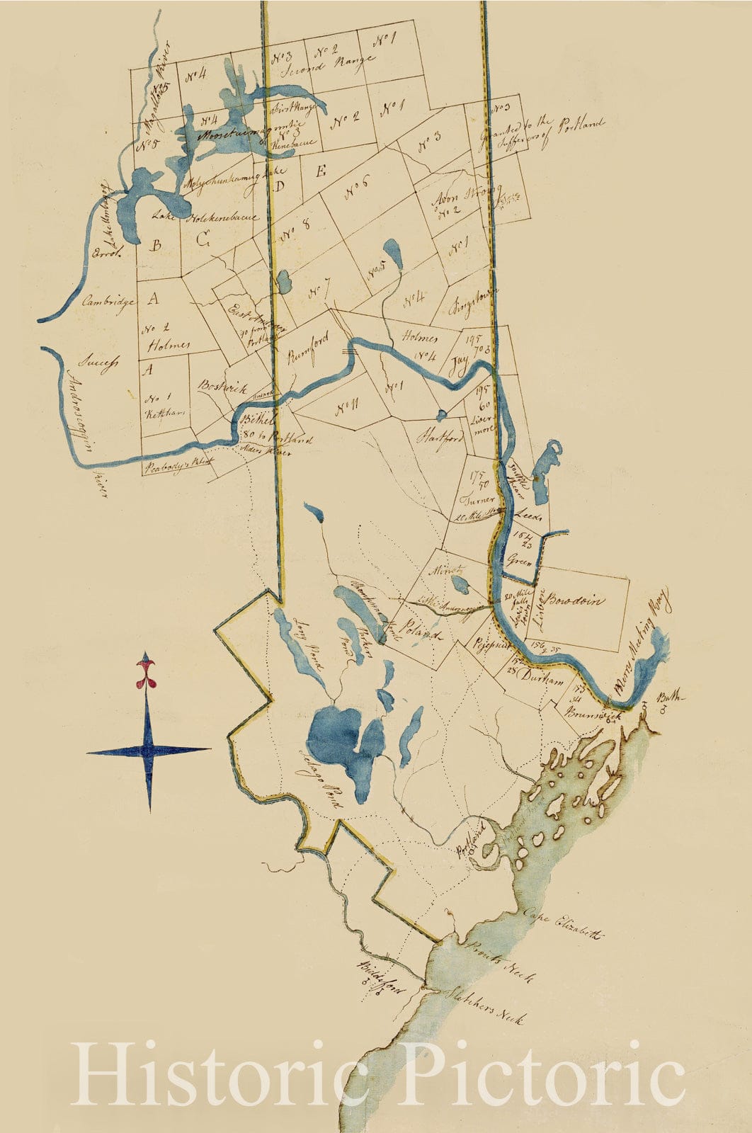 Historic Map : Map of Moosehead Lake and Northern Maine Embracing the Headwaters of the Penobscott, Kennebec, and St. John Rivers, 1883 , Vintage Wall Art