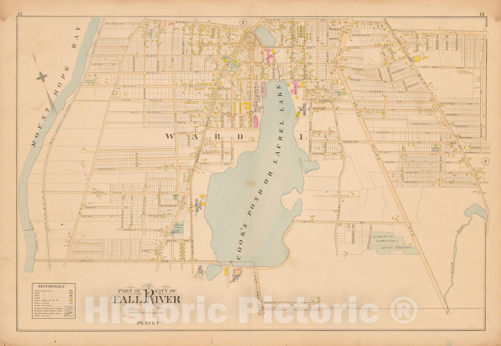 • .Historic Map : New Topographical Atlas of Surveys Bristol County Massachusetts, Fall River 1895 Plate 001 , Vintage Wall Art