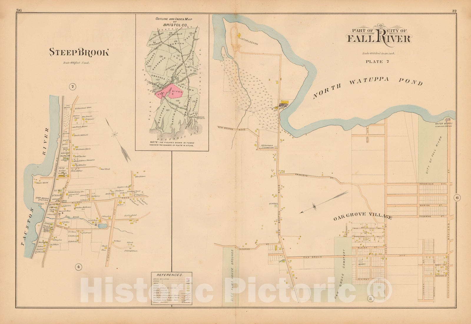 Historic Map : New Topographical Atlas of Surveys Bristol County Massachusetts, Fall River 1895 Plate 007 , Vintage Wall Art