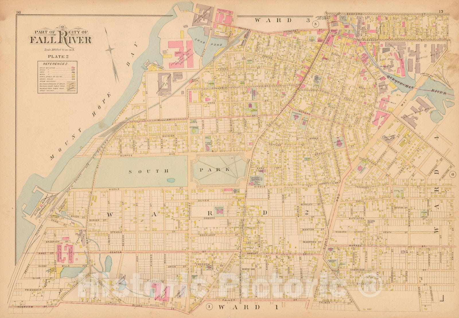 Historic Map : New Topographical Atlas of Surveys Bristol County Massachusetts, Fall River 1895 Plate 002 , Vintage Wall Art