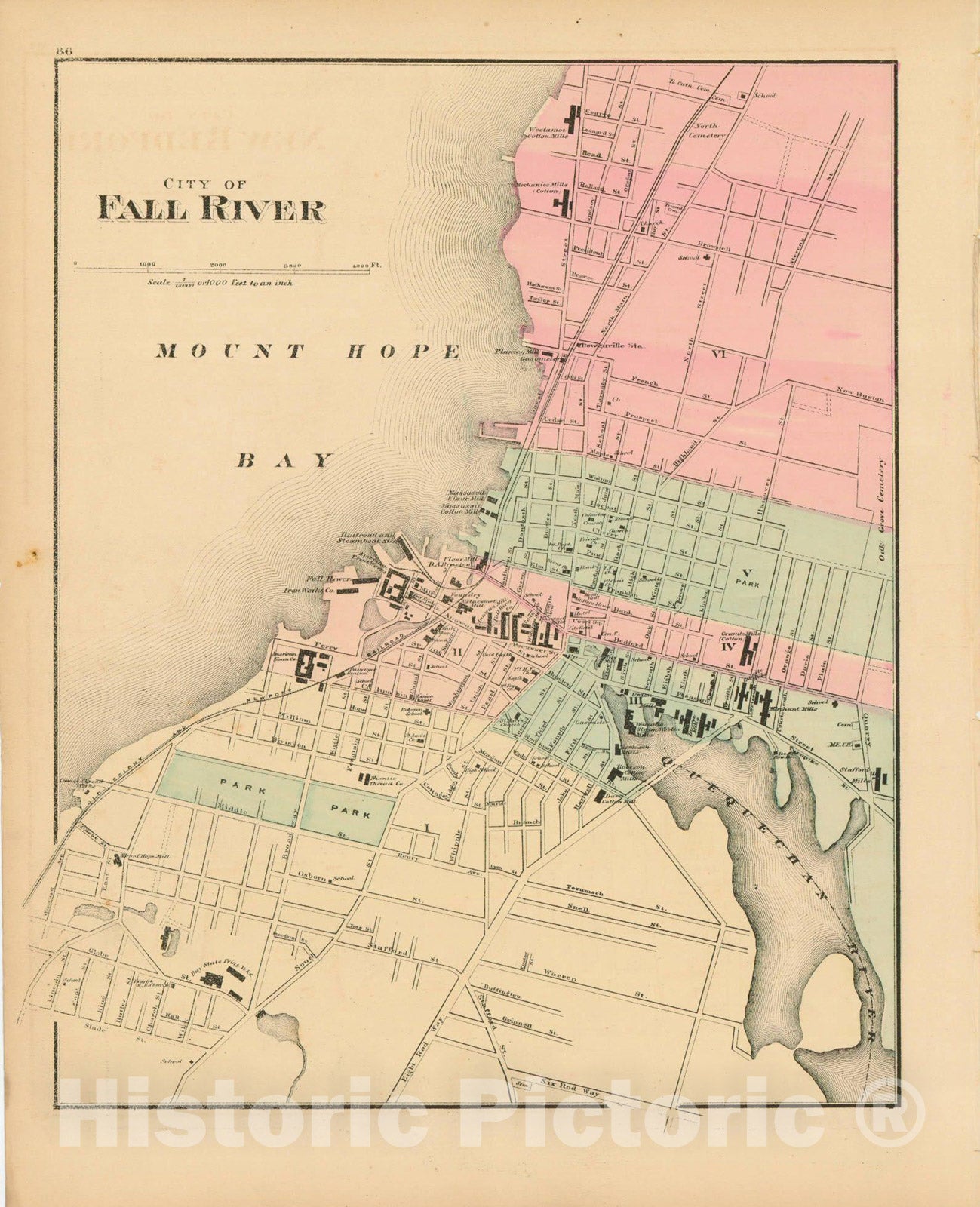 Historic Map : Official Topographical Atlas of Massachusetts, Fall River 1871 , Vintage Wall Art